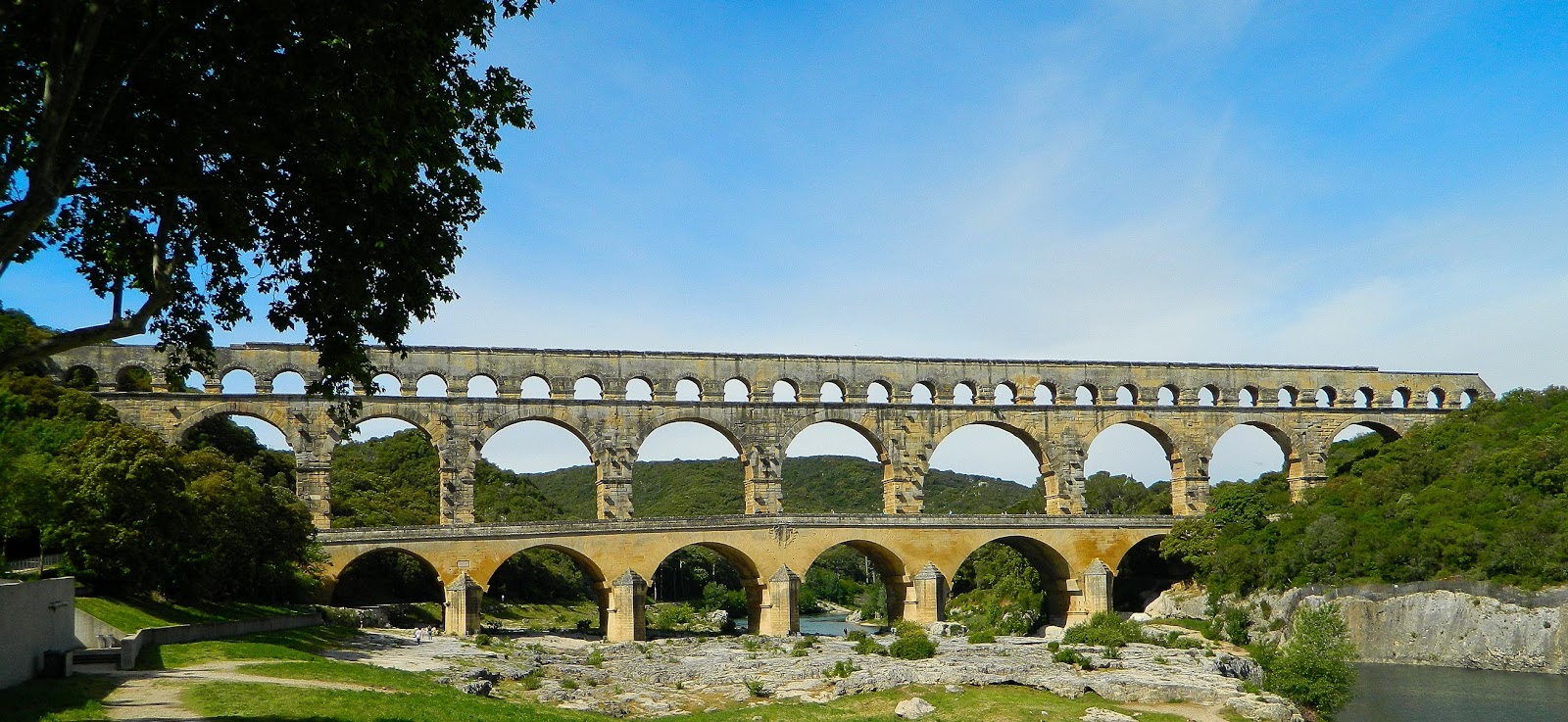 The bridge and three-tiered aqueduct was a breath-taking sight bestriding the currently low waters of the wide river Gard.
