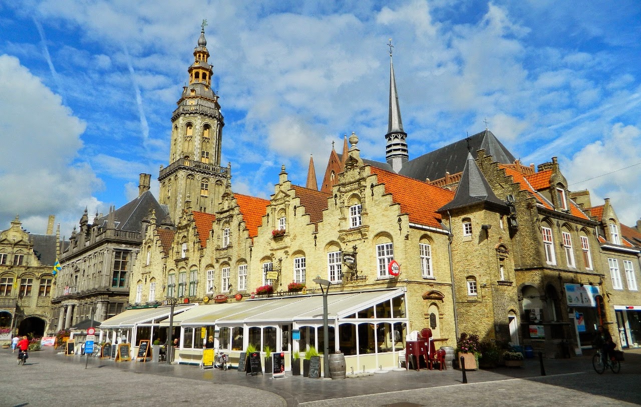 The Flemish architecture of high roofs and stepped gables topping tall brick terraced buildings with small leaded windows set in stone mouldings is captivating, and lends to the town a fairy-tale charm despite its gruesome history.