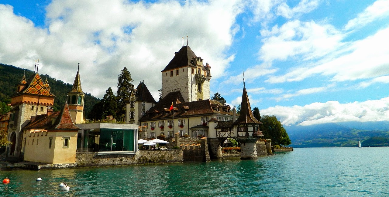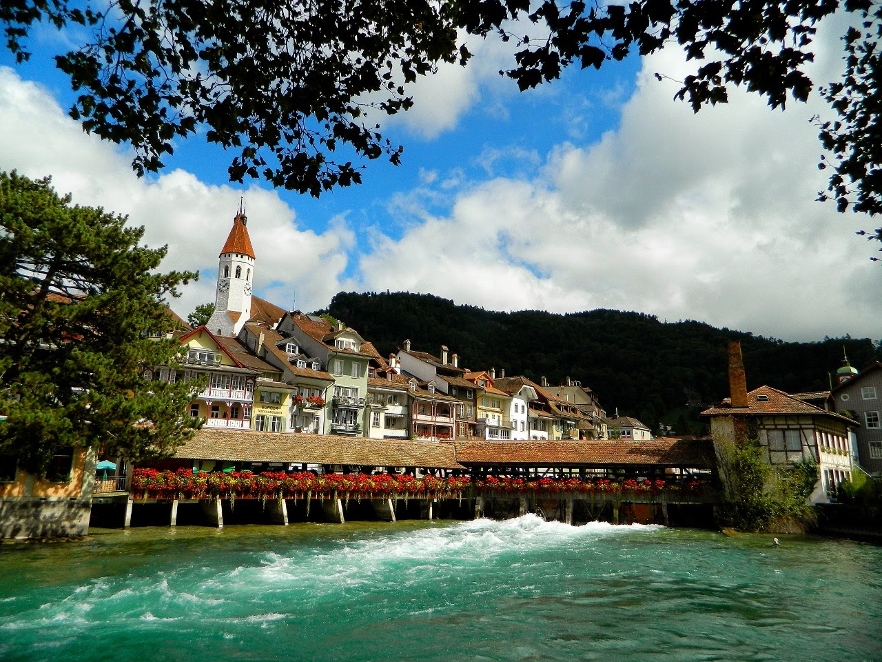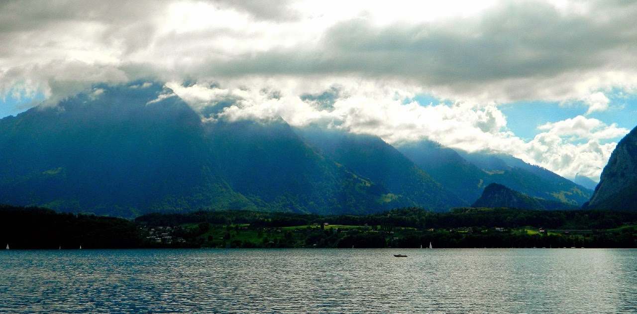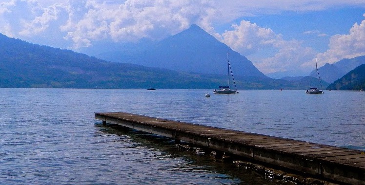 A network of paths took us along the lake shore to the end of the castle grounds and out into the public gardens. It was noticeably warmer here than at Thun and the crystal clear lake waters dazzled under blue skies. People were strolling and smiling as we headed to the nearest bus stop.