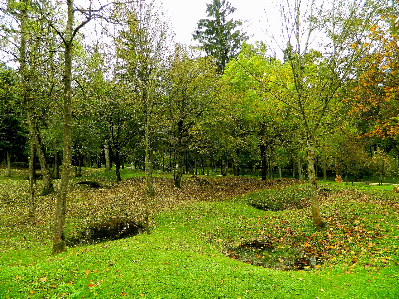 Not a battlefield but a place of everyday life until it was overcome with shelling. What is left is a quiet wooded slope of grass craters, mounds of stone and grassy hummocks.