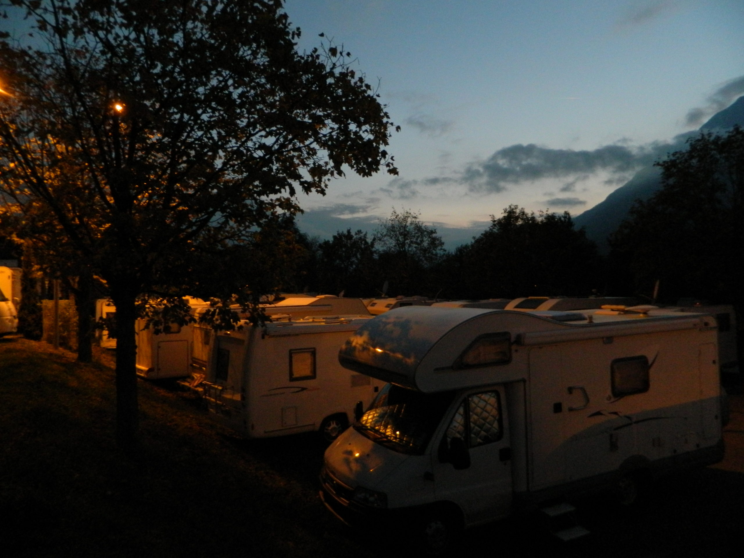 The farmer was busy on the barbecue and his family were serving drinks and waiting on trestle tables packed with motorhomers. A father and daughter music act sang English pop songs in the corner. We knew the words but no one else seemed to.