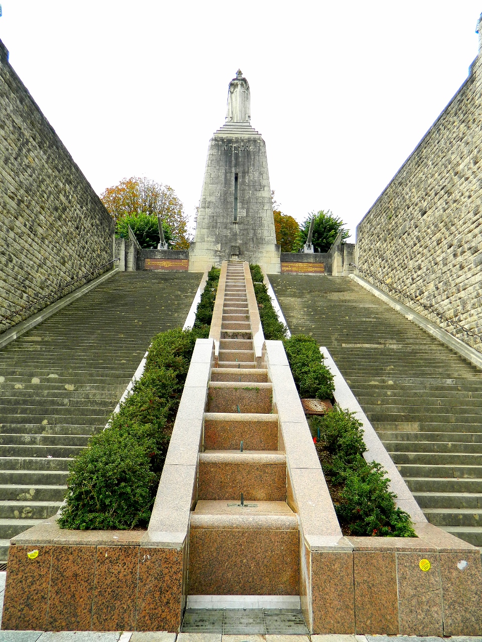 We were indeed impressed by its size and scale, vaguely fascist in design, with great pink marble steps that lead down from the statue and through the centre of the city to the waters of the Meuse.