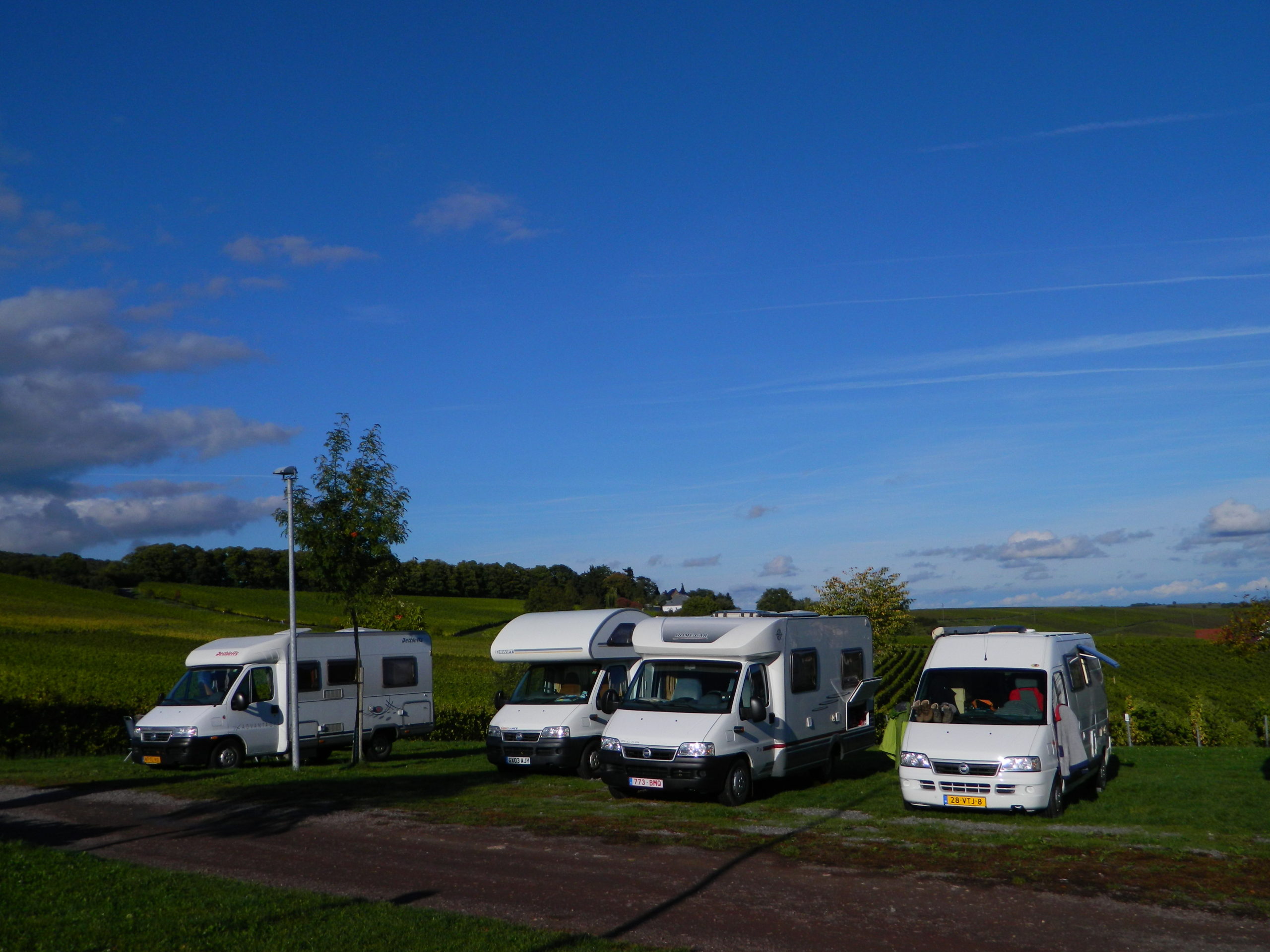 The weather cooled overnight and it was cloudy and drizzly as we set off the next morning to walk to the weinfest in the next village, at Nicole’s urging, to taste ‘the new wines’. We greeted many locals going for a Sunday stroll and were followed by a gaggle of Dutch campers, who thought following the Brits was a good idea.