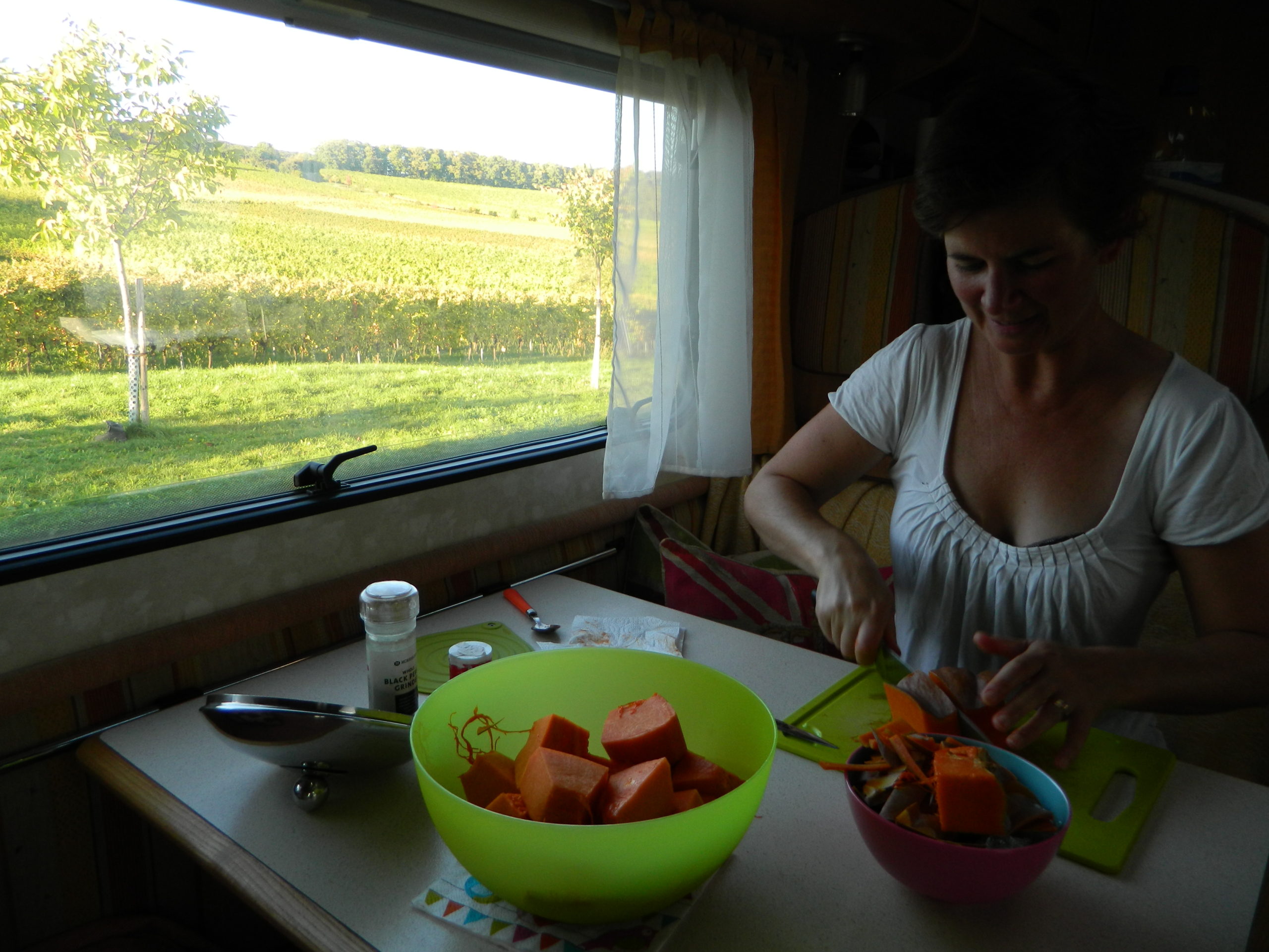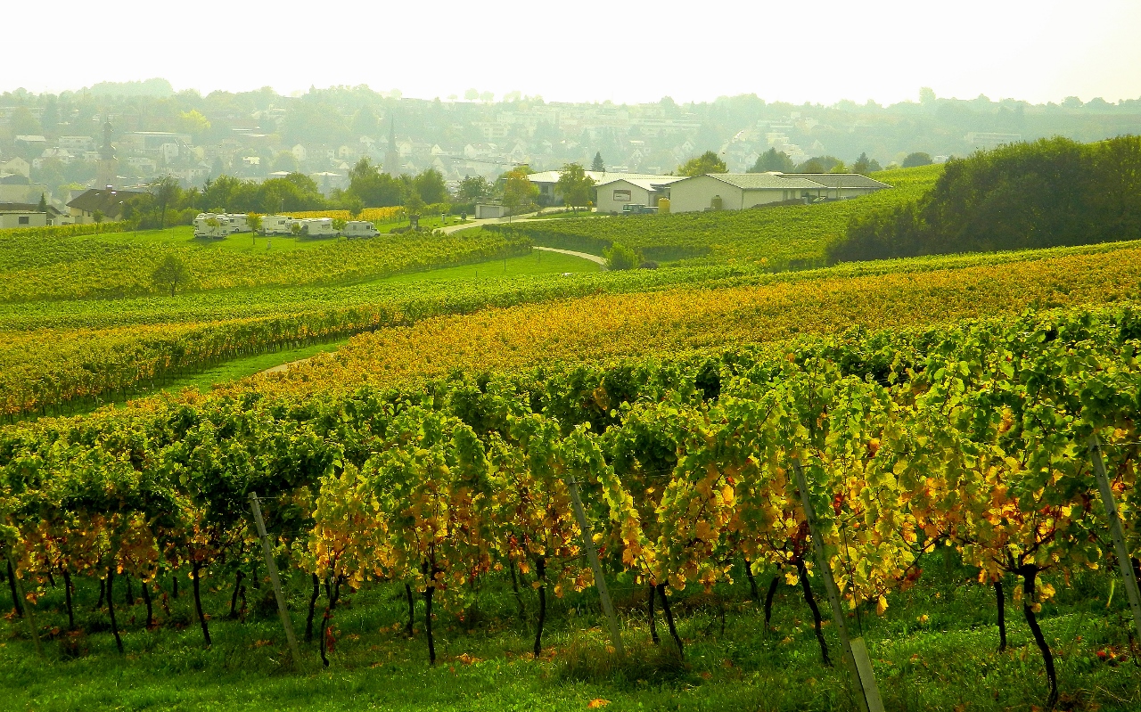 It was a mercifully short drive along the busy autobahn before we got off it and into the rich agricultural land of the Pfalz in West Germany. The way to the bottom of the Weinstraße was mainly farmland and piles of harvested pumpkins, squashes, cabbages and potatoes lined the fields.