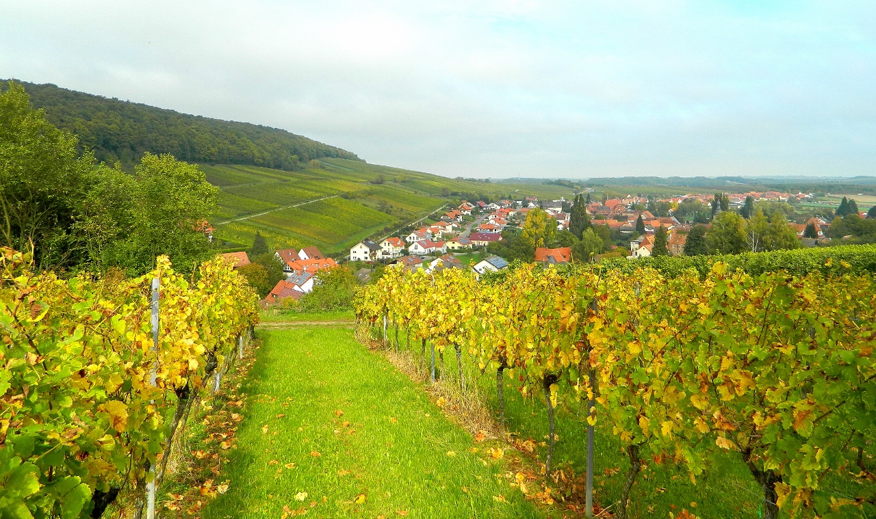 Small villages advertised Erbst or Oktoberfests and many homes and farms had barrows piled high with fresh vegetables for sale alongside the road. Iron- framed archways into and out of villages wound thickly with vines, lately picked. At the spa town of Bad Bergzabern we wound up a steep hillside through the grounds of a klinik and into the vineyards of Weingut Hitziger.