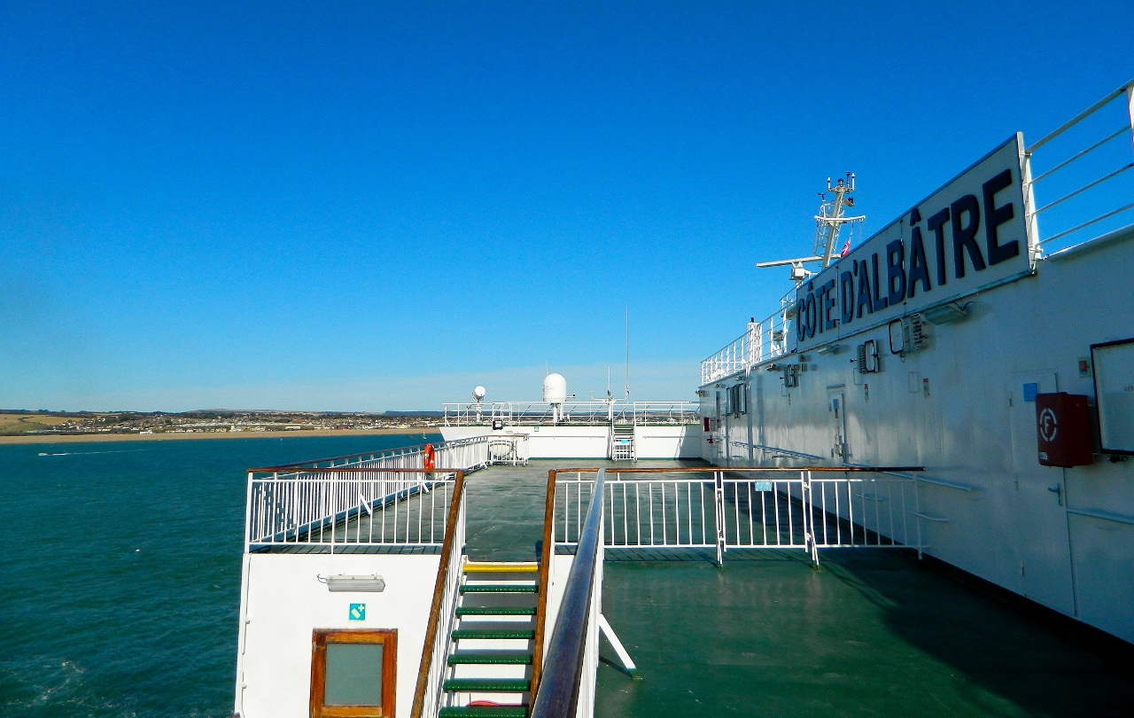 After a frantic few weeks of finishing work whilst planning and packing for the trip, and of not selling the house then getting an offer of the full asking price on the drive along the A27 to the ferry, both of us found the sight of the English cliffs pulling further away slightly unreal.