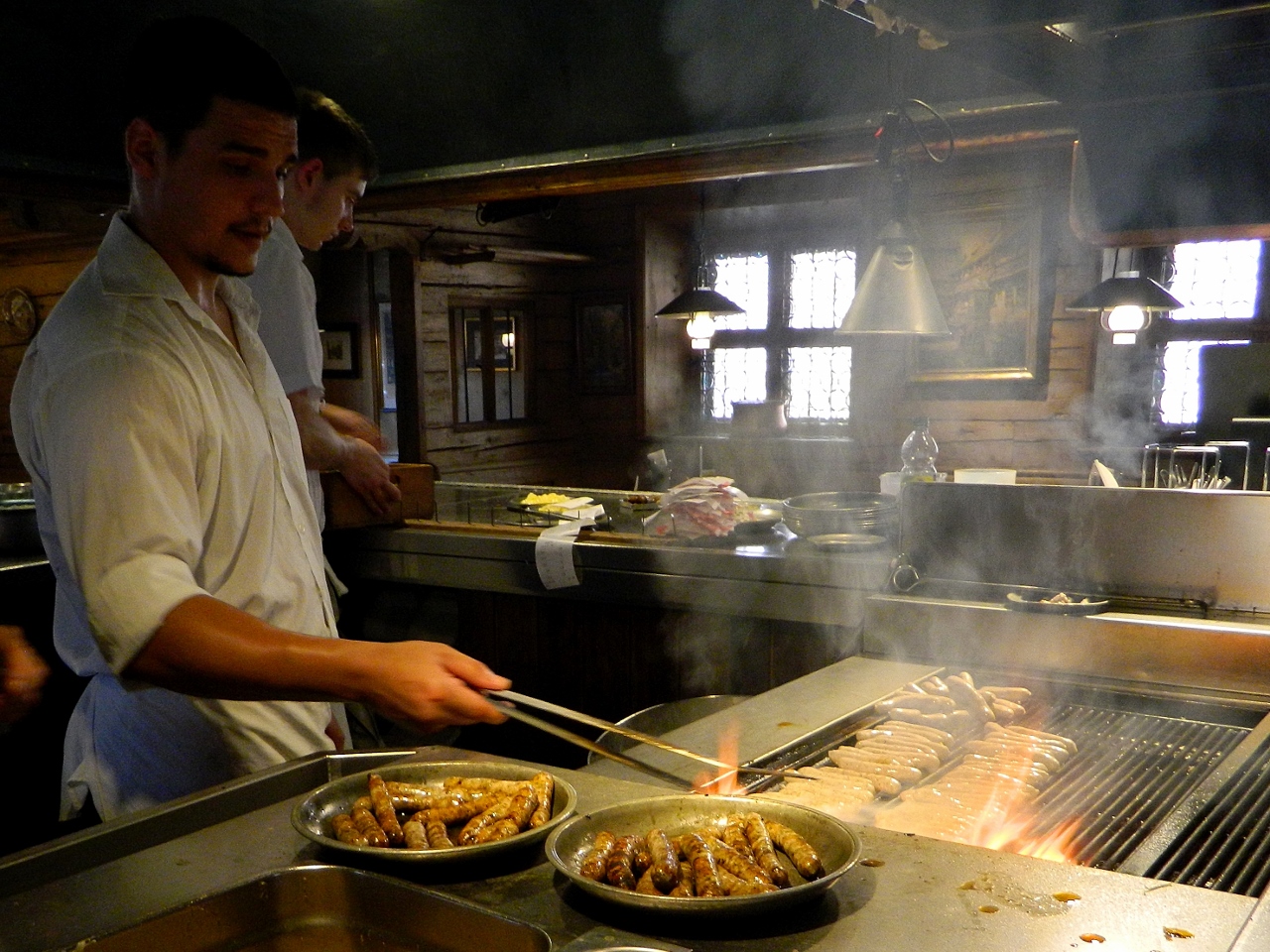 An honoured tradition is the old wursthauses which cook up Nuremberger sausages over hot smoking grills. We joined a terrace full of over-excited Americans, animated not by the delicious food but by the overbearing presence of a grinning celebrity chef in their midst. Ignoring Rick Steeves (and his clumsy entourage) we tucked into a plate of the delicious finger-length bangers on a bed of highly pickled sauerkraut served with juniper berries and hot senf – a mustard sauce.