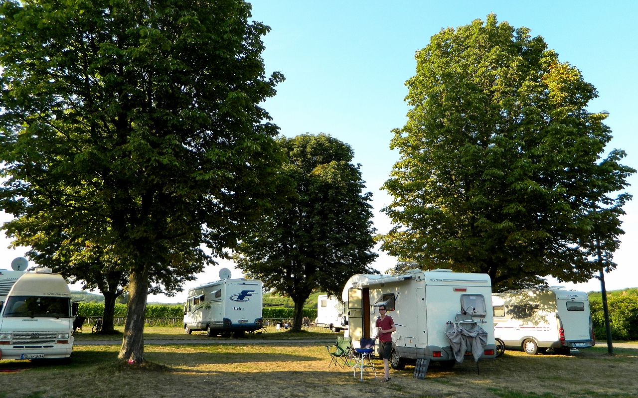 Having got Bertha coolly parked and pitched we cycled to explore the town of more than 100 wineries with a historical tradition of bathing and healing. A considerable acreage of public gardens are variously planted with exotic and European flowers and trees through which narrow paths wind upwards, past ornate fountains, to the old centre of ‘Romer Platz’. The Romans founded the town and its vineyards so we knew we were onto something good.