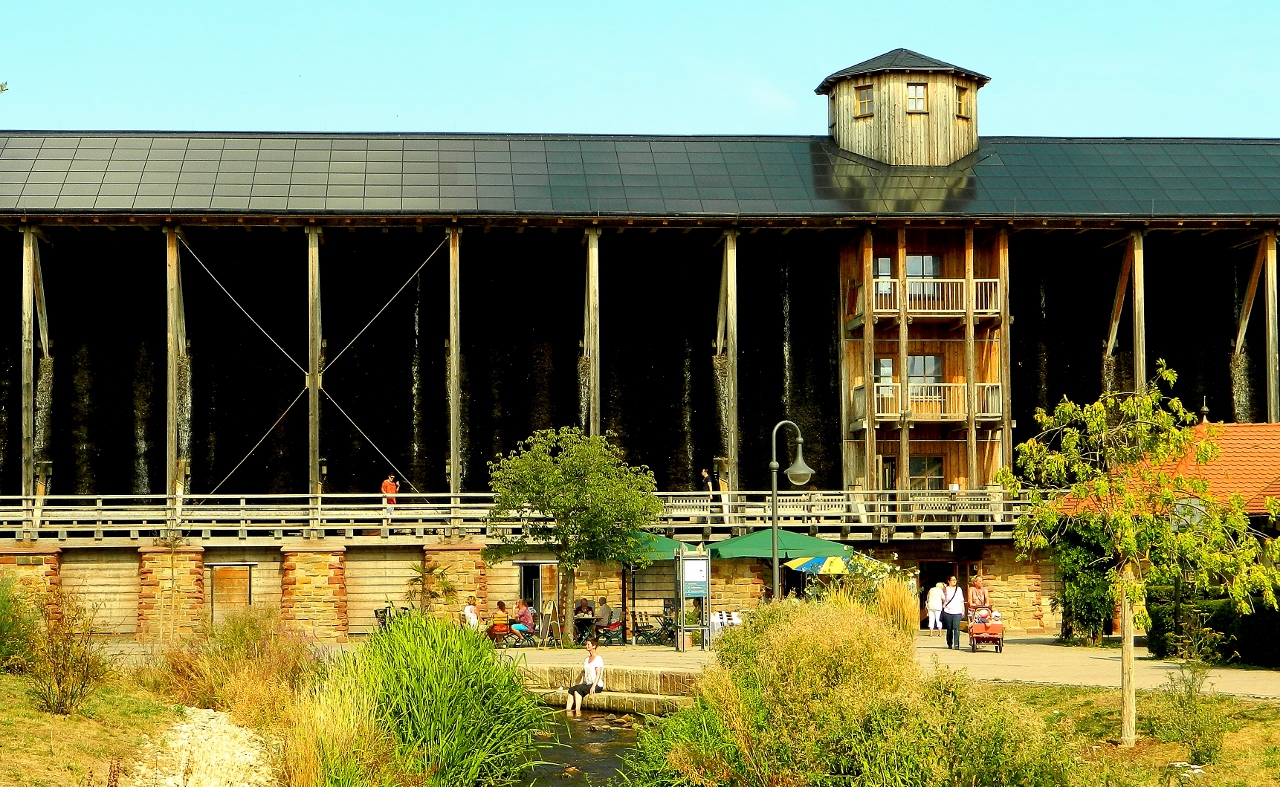 At 333m long this impressively tall wooden-framed walkway houses the longest ‘salt evaporation works’ of its kind in Germany. Salt water trickles down over blackthorn twigs and is nebulised, making for a style of healthy marine air, deep inhalation of which provides relief from respiratory problems. We saved a gentle saunter around it for the next day as the temperature again reached 39 degrees and the salty misty air provided pricelessly cool comfort for a meagre 1 euro and 50 cents.