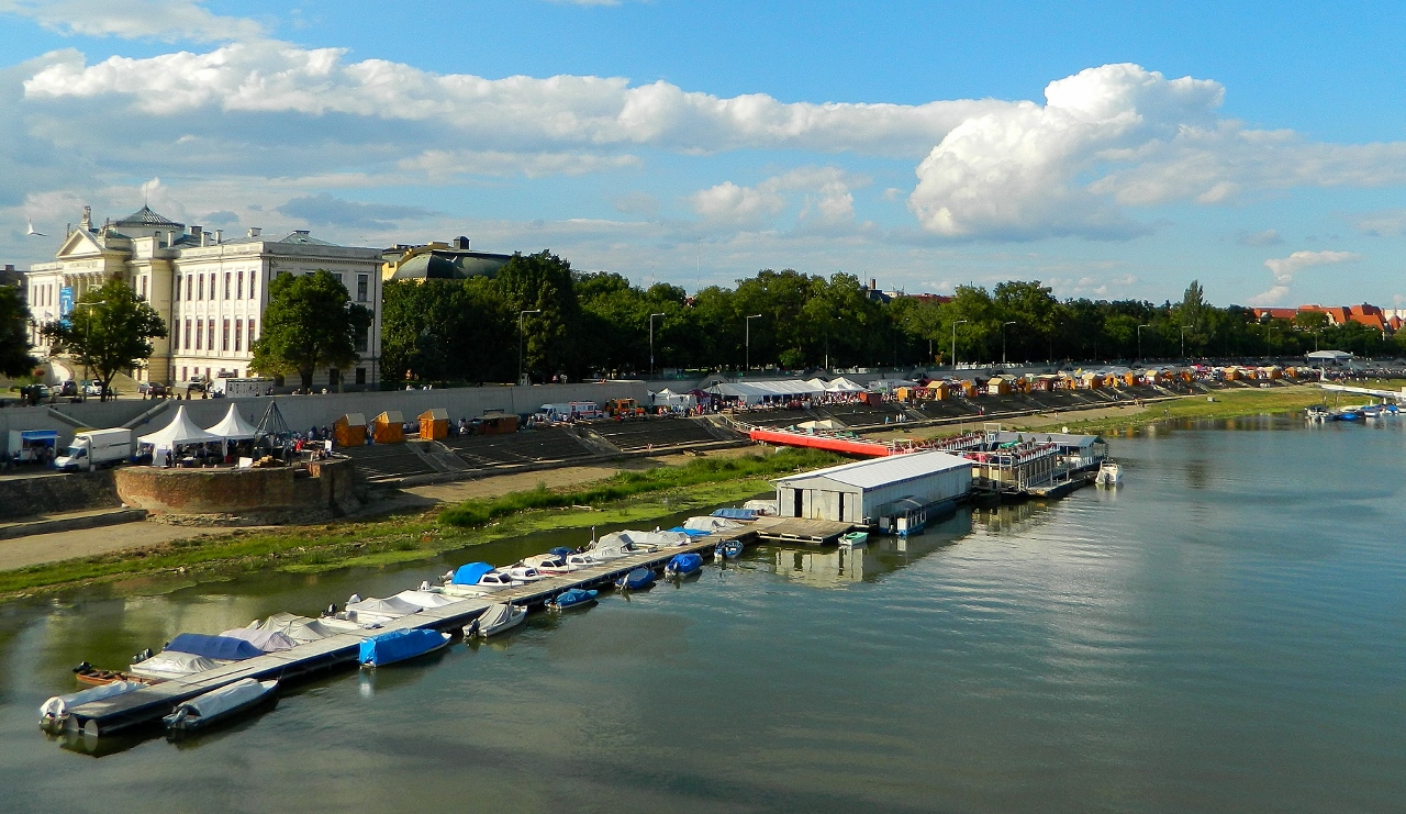Our Sunday afternoon drive on the motorway to Szeged was easy and free-flowing and we pitched up along the river Tisza at a down-at-heel looking camp by 4pm. Workers were noisily dismantling the summer season’s camp,  so we wandered across the river to explore Hungary’s southern-most city.