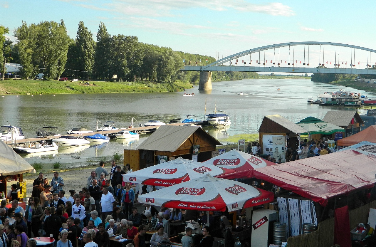 We meandered happily along the length of the river bank and back for a couple of hours enjoying the festival atmosphere. Local wine and beer merchants were plying their wares so later on we sampled a glass of Hungarian Riesling and Barocca before heading back to Bertha in the dusk.