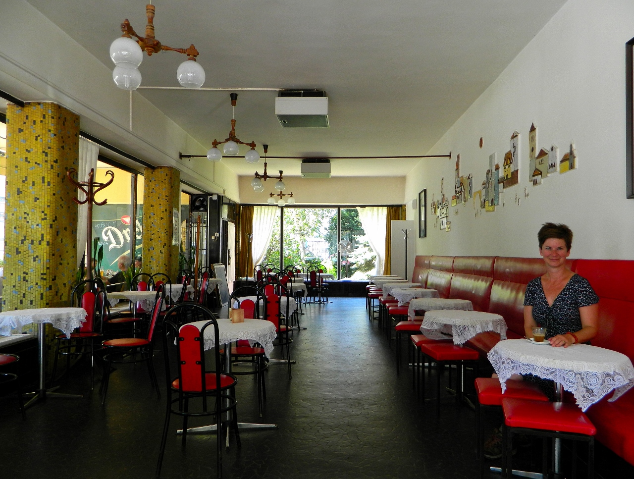 Coffee is taken short and strong with sugar, not to our liking so we didn’t have many, but stopped again at cafe Bambi a former haunt of secret police and informers and still maintaining its evocative 1960’s interior decor.