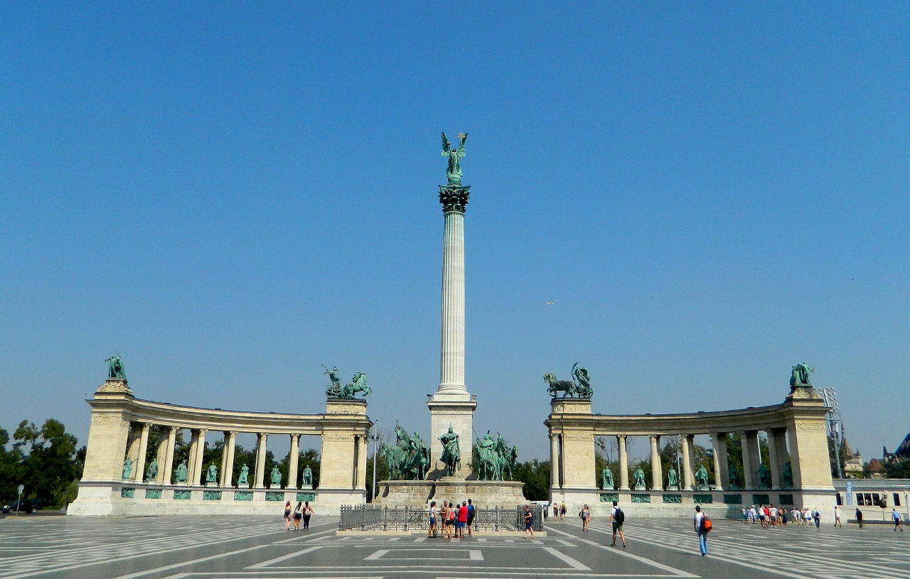 At the top of the avenue the spectacular Heroes Square of 1896 marks the 10000th anniversary of the Magyar’s conquest of Carpathia. The almost storybook figures of the ferocious-looking and hooded heroes on horseback are a reminder of the romance of Hungarian folk culture.