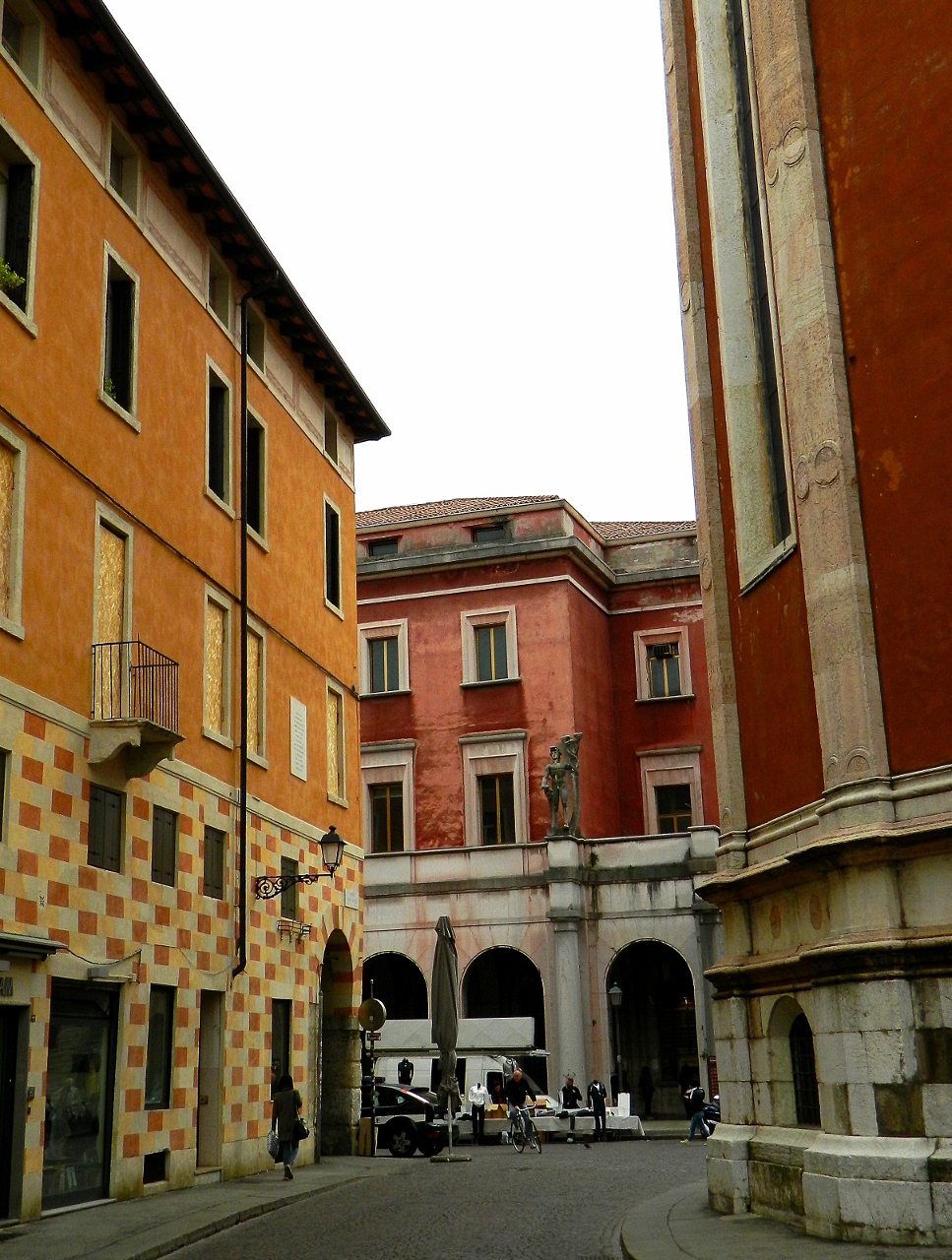 We broke up the journey on the wretched A4 with a stop in Vicenza. Again, not knowing what to expect, we were delighted by the beguiling architecture of this small and unpretentious university town. Unesco has declared it to be a World Heritage Site for its 23 buildings attributed to the sixteenth century Italian master, Palladio.