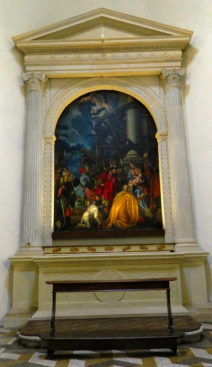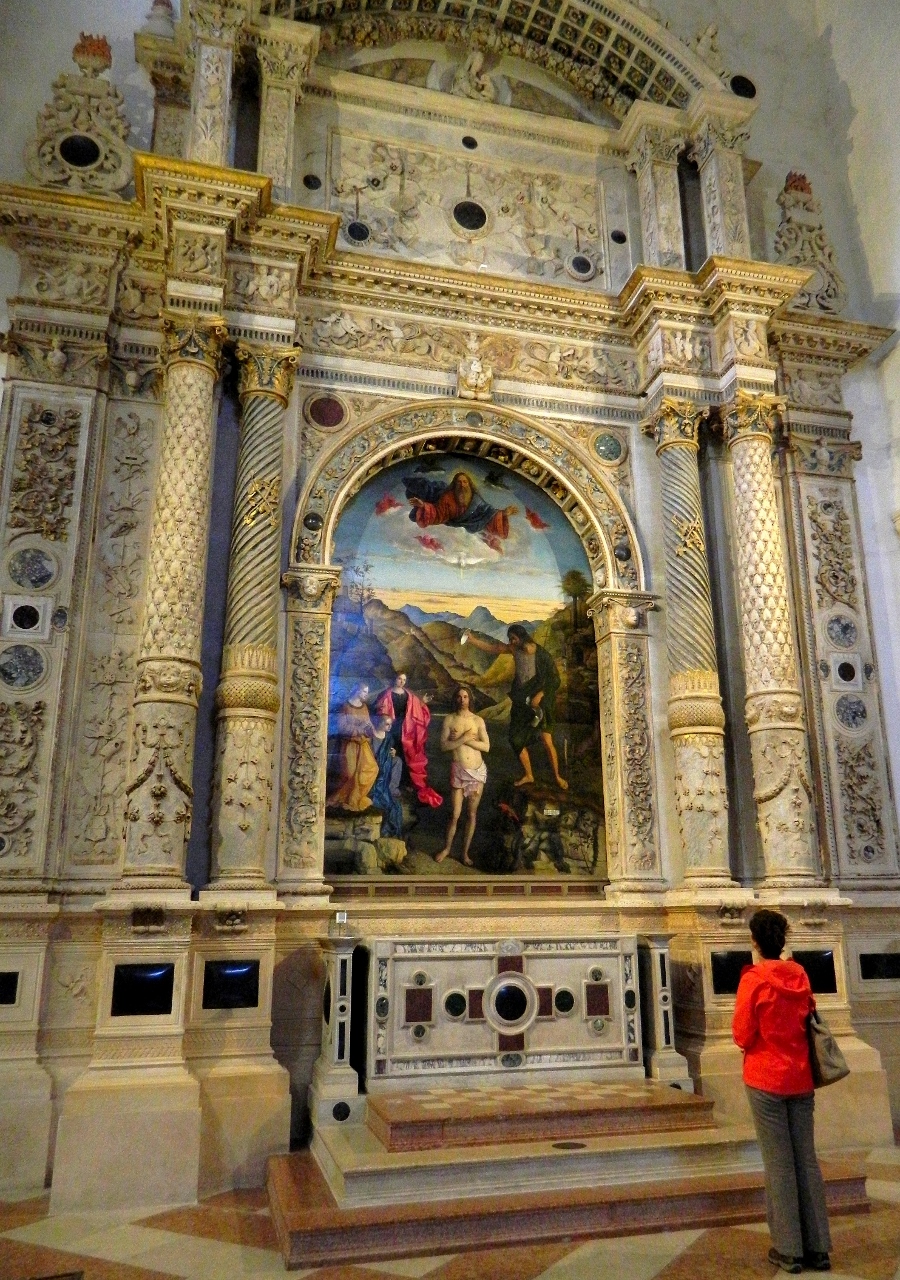 In the light-filled Chiesa di Santa Corona we admired two renaissance masterpieces by Bellini and Veronese. A bright red bird took part in Christ’s baptism and the brightly gowned Magi worshipped the nativity in a crowded audience of interested horses, cattle, sheep and camels.