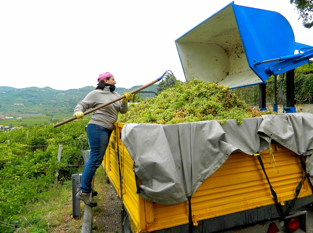 In the castle’s vineyards a happy couple with a small dumper truck were busily loading their harvest of white grapes. Cheerfully they told us in Italian that they farmed 40 hectares and the current load on board would make maybe 30 bottles of ‘Classico’. They seemed elated by their harvest, and our English interest, and gave us a bunch of their grapes.