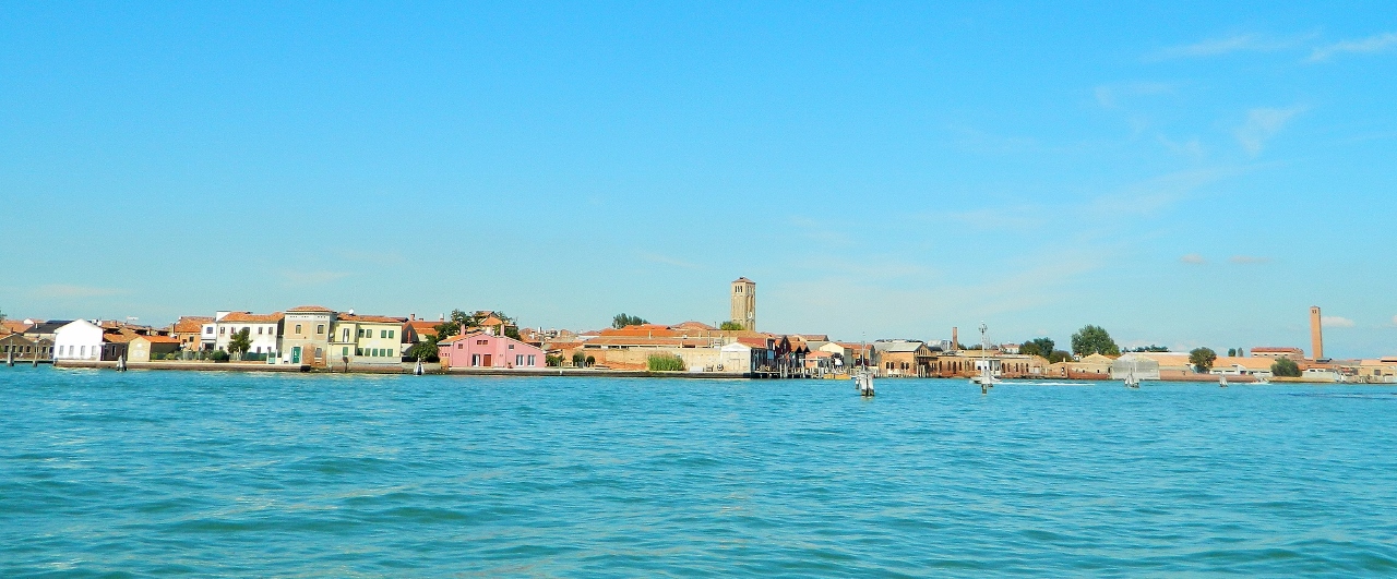 A hot day’s sunshine sent us onto a boat to visit three of the neighbouring islands, all with a character of their own. Murano, famous for its glass products produced by famed master craftsmen (although the one we saw at work didn’t seem particularly enigmatic) is dominated by the glass warehouses, shops and marketing agencies.