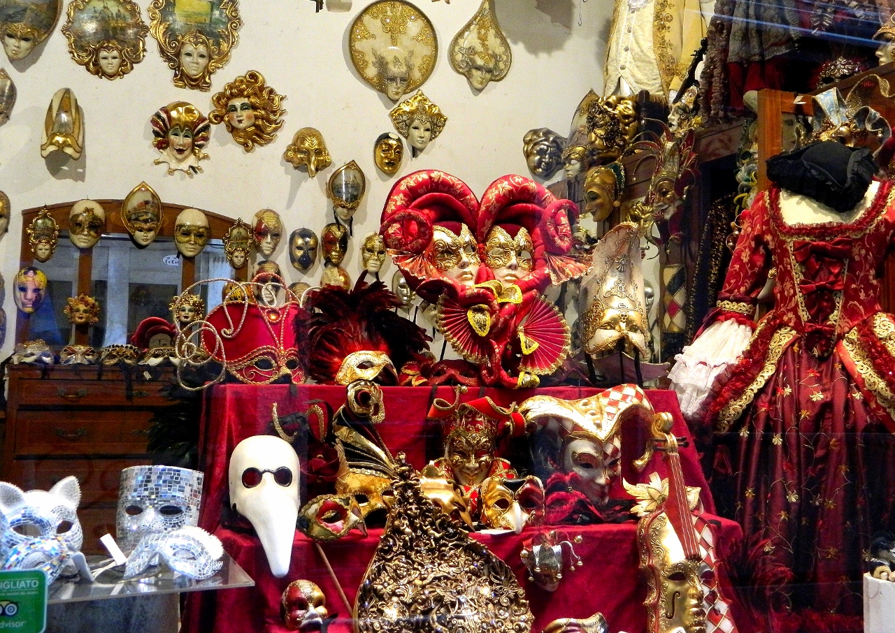 On these occasions a dimly lit window display of sinister and beaked Venetian masks against a rich red velvet backdrop is a welcome, if strange, beacon.