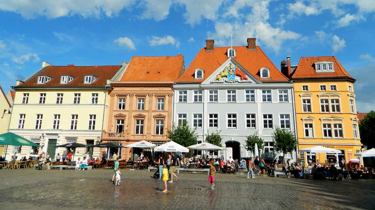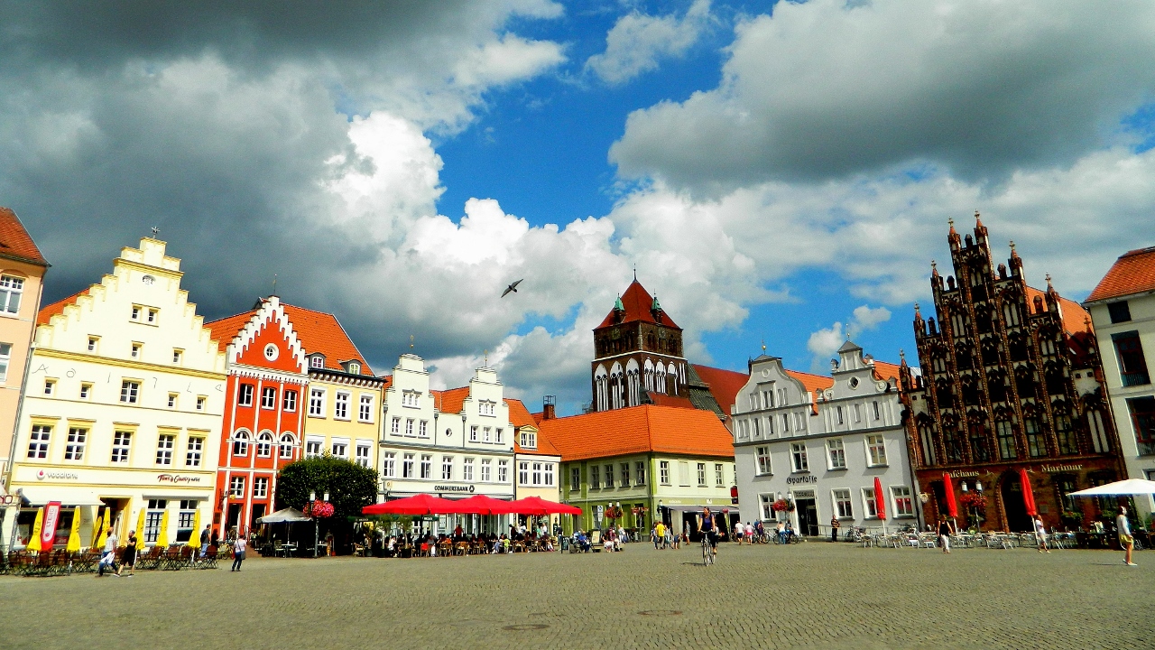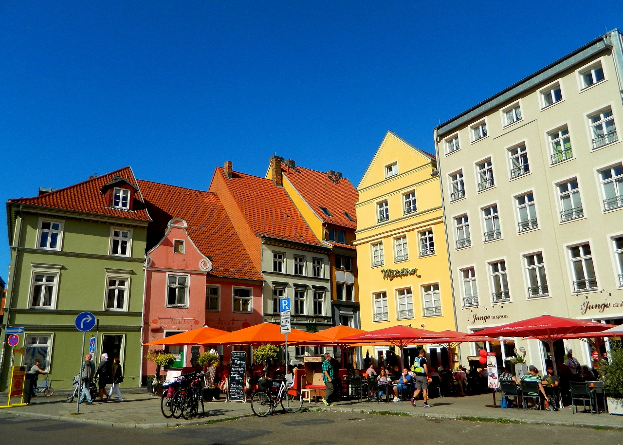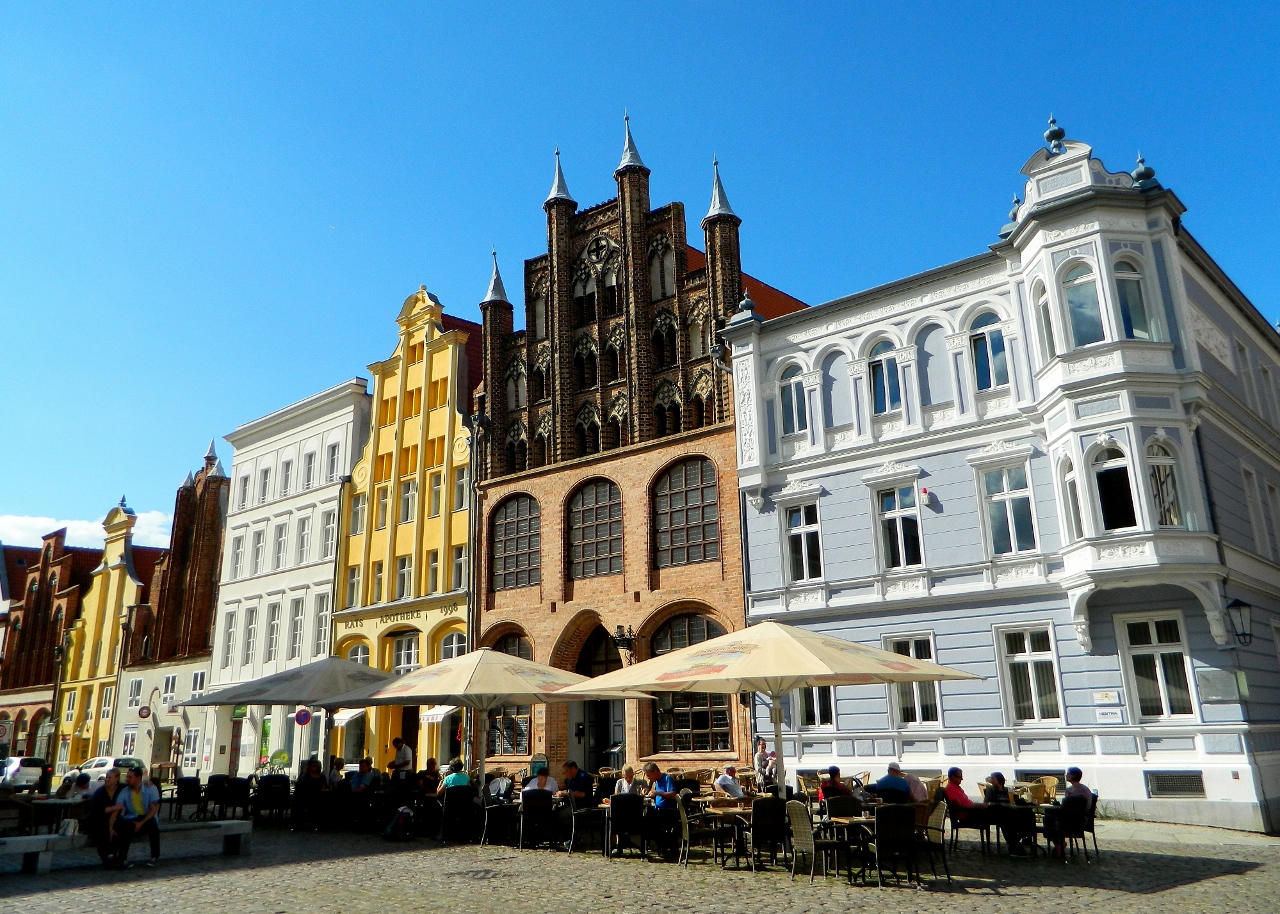 In Stralsund, brightly painted townhouses in vibrant colours of yellows, blues and reds were mixed with striking gothic brick-gabled and spired churches and civic buildings.