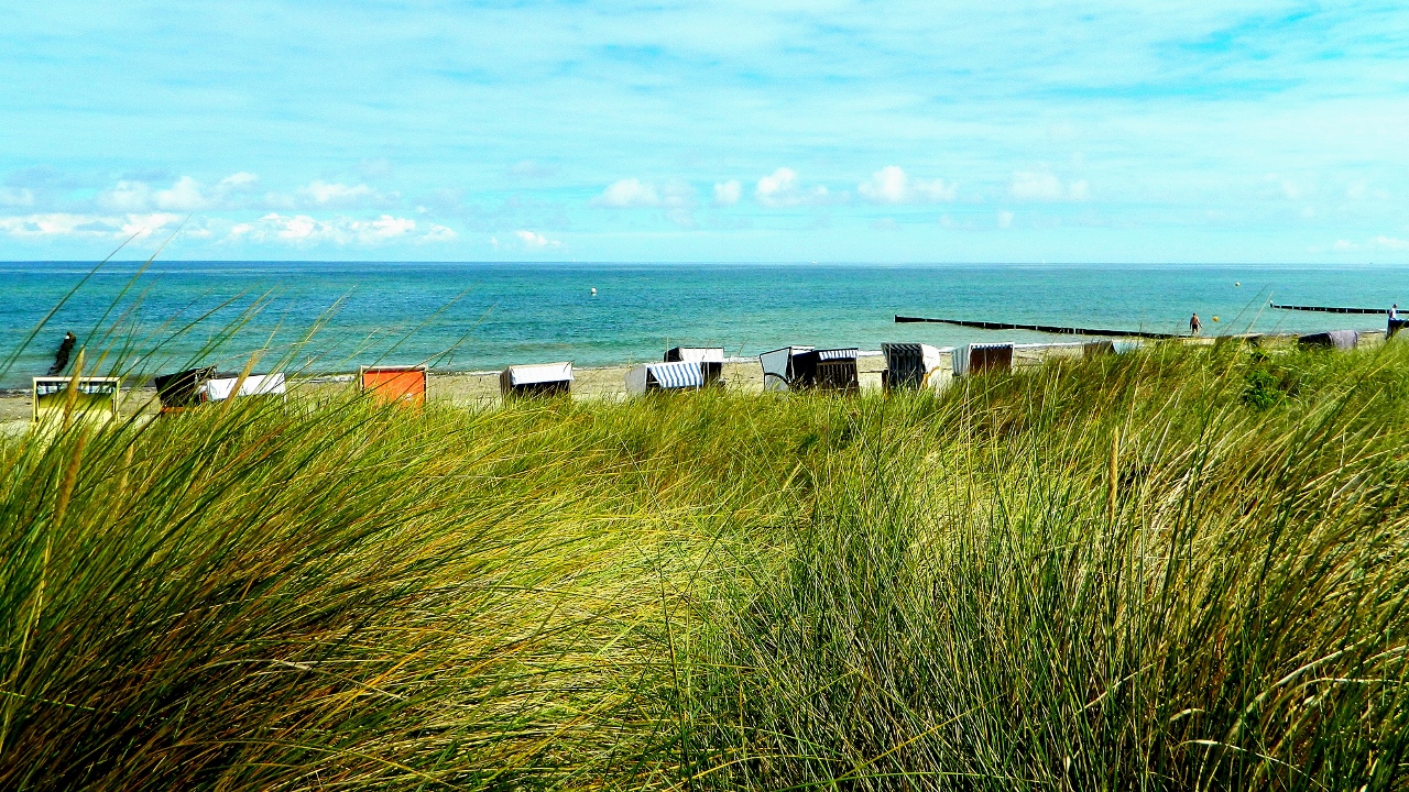 The German Baltic coastline is beautiful. White sandy beaches stretch in long and wide bays which bank up into high sand dunes lined with tall grasses that blow and sway in the cooling breeze from the North.