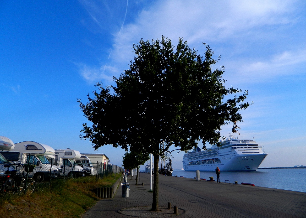 We headed further east to Warnemunde, a large shipping, ferry and cruise port to stay at its harbour. For 24 hours we were treated to the sight of Scandinavian ferries regularly arriving from Helsinki, Trelleborg and St Petersburg, as well as large industrial barges and gigantic and luxurious cruisers.