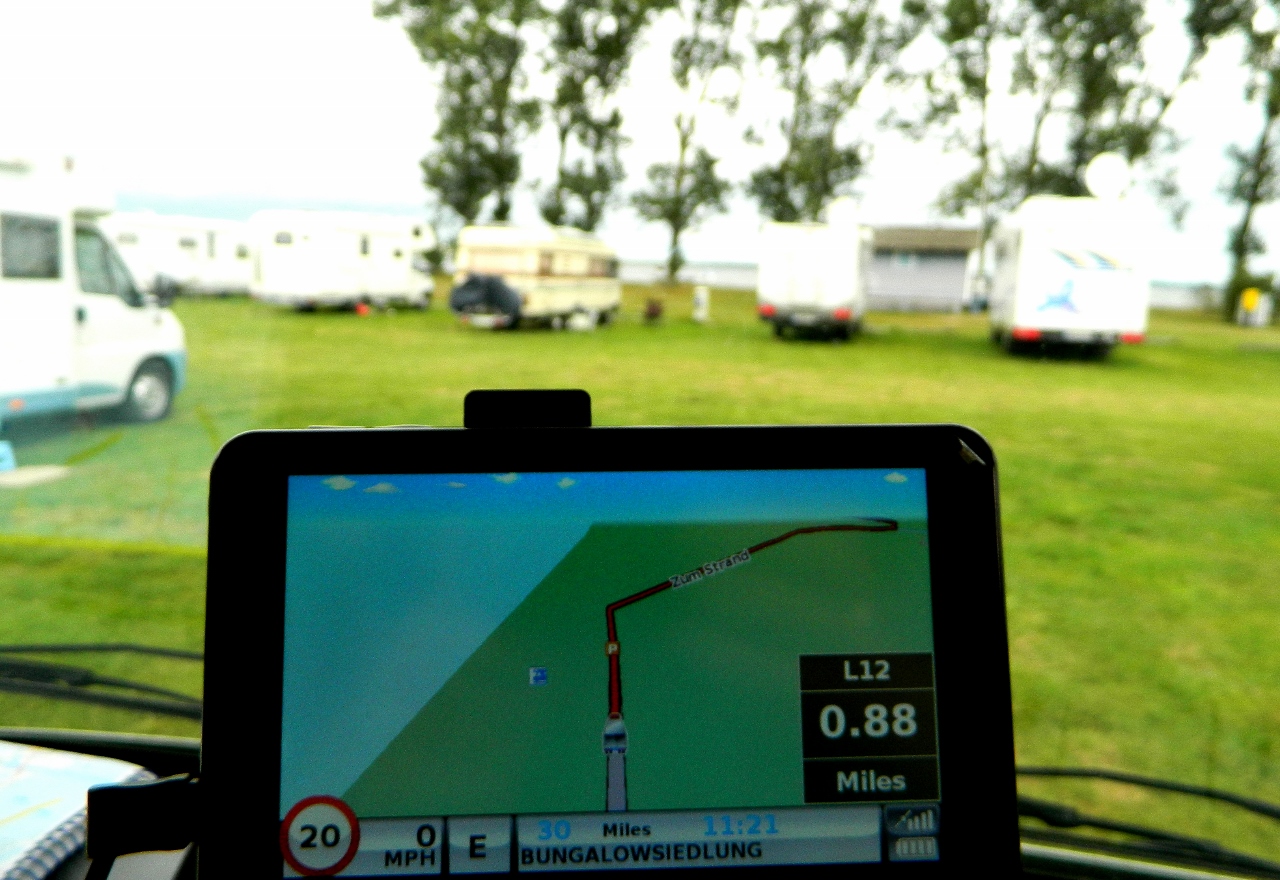 Cycling out along the River Ryck to the fishing village of Wieck for fried backfisch in bread rolls (and a visit to the ruined brick abbey of Eldena) we clocked up another 15 miles, before eventually finding Bertha back at a family-run stellplatze, handily close to a supermarket.