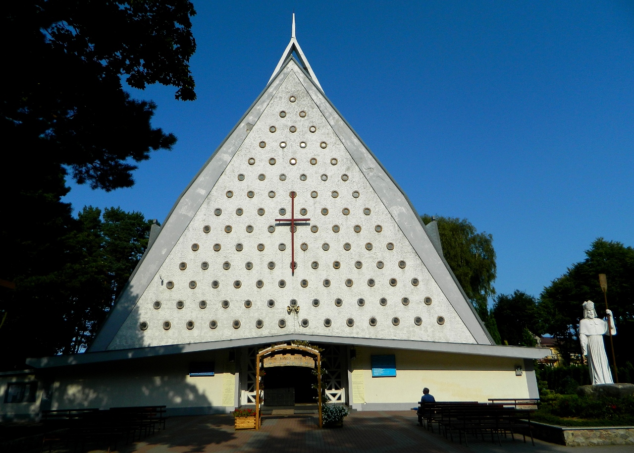 In the late afternoon somnambulance of Wladyslawowo we visited the strange concrete pyramid of the town’s Catholic Church. The gigantic triangular stained glass windows sent a kaleidoscope of psychedelic colours across the traditional wooden pews where a crowd of youngsters had gathered.
