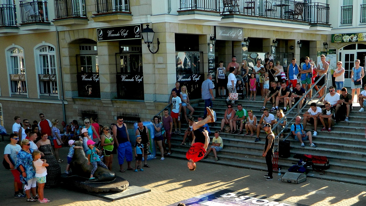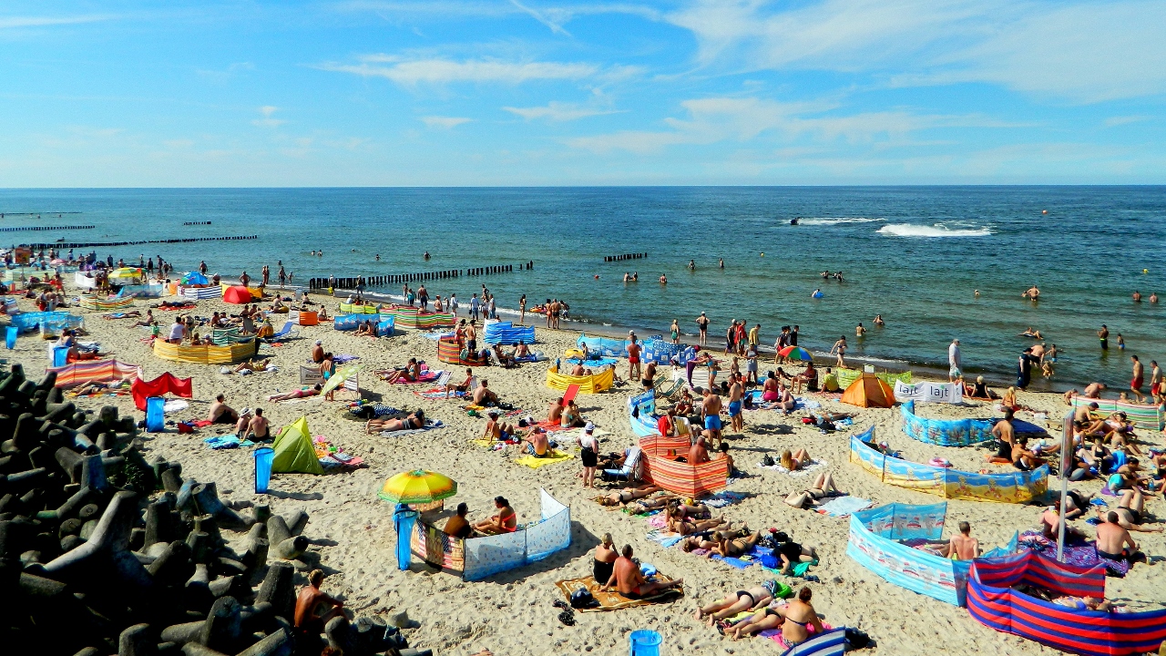 Polish beaches, after German counterparts, were a revelation of familiarity. Gone were the quiet strandkorbe-lined and orderly enjoyment of the sunshine and sea, here was the noisy frivolity and colourful chaos of a British bank holiday in Brighton.