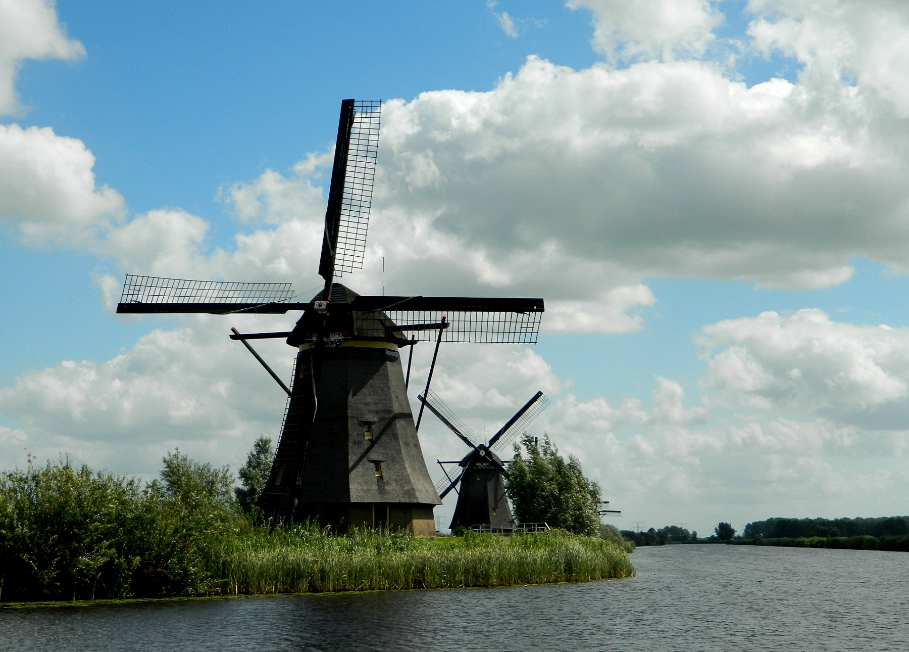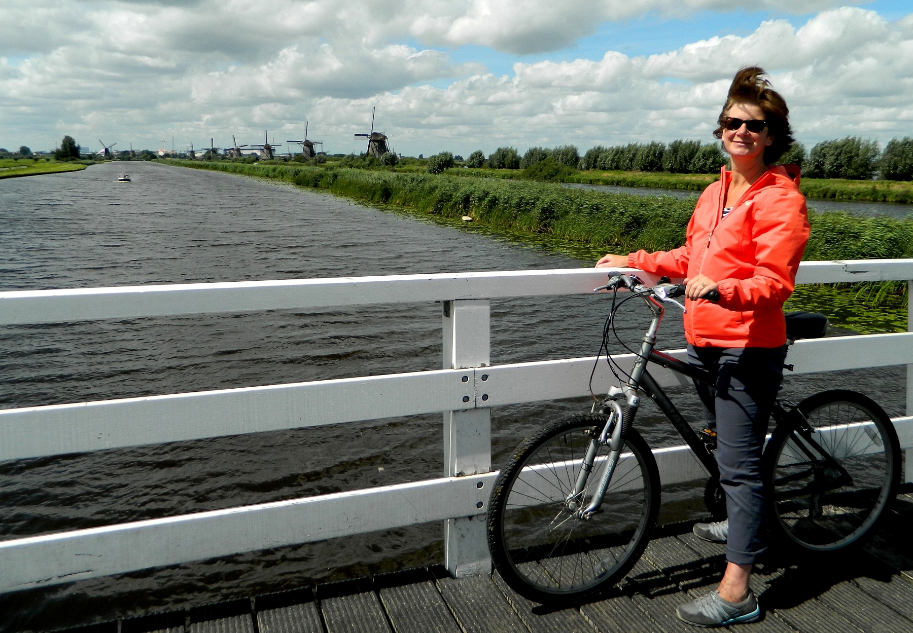 The Unesco world heritage site of Kinderdjik was only a short three mile pedal away but the strong wind made the flat terrain feel like a mountain, both of us cycling in low gears just to keep balanced on the saddles of the bikes alongside the banks of the River Noord.