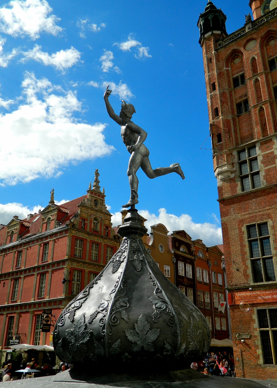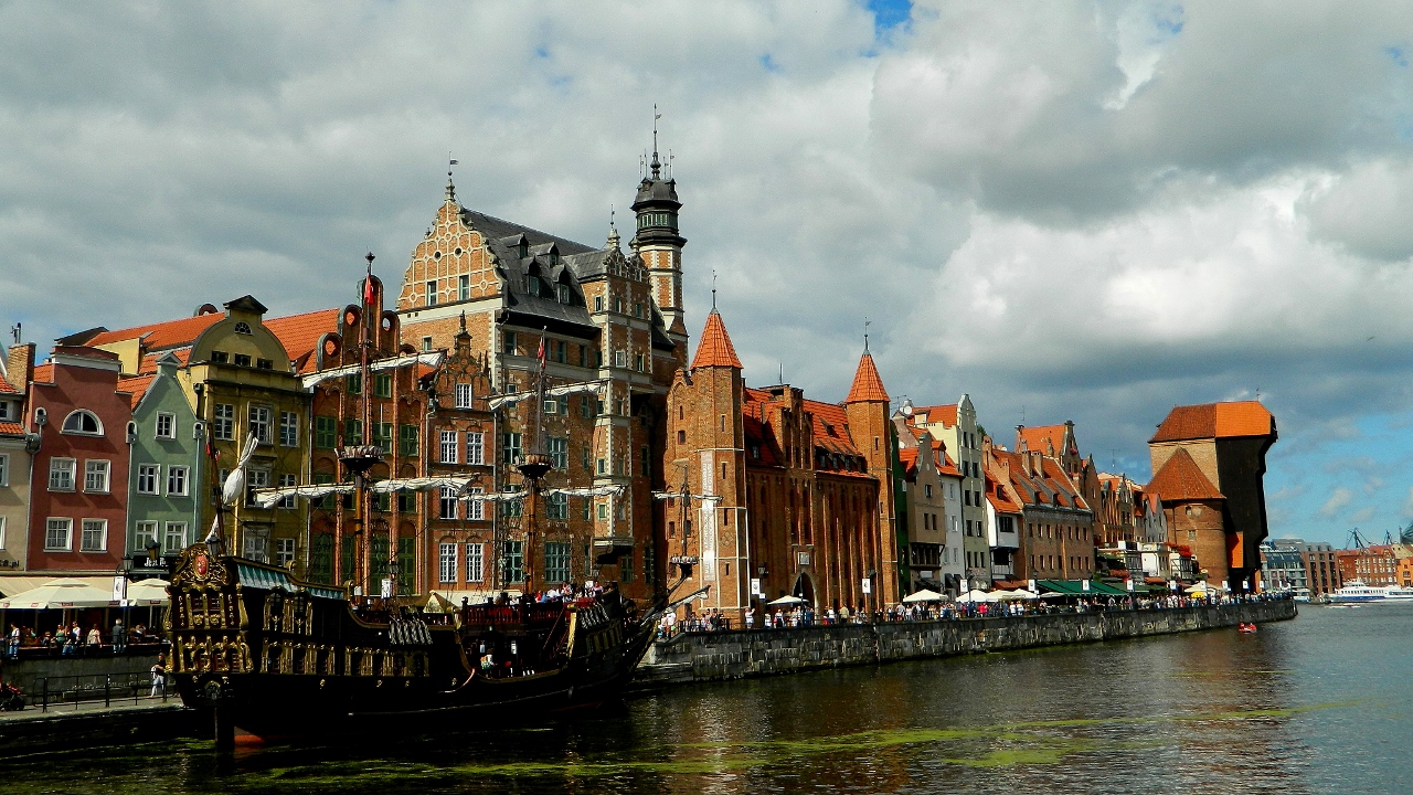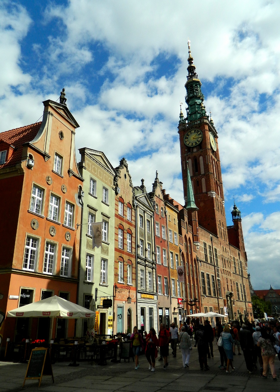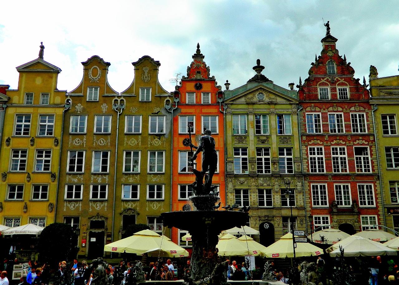 The Germanic and Dutch burghers operated a booming economy based on trade and liberalism and employed Italian and Flemish architects to embellish their town houses with hanseatic motifs of step-gabled rooflines, colourfully painted and gold-gilt reliefs and ornate balconies. It was called by its German name, Danzig.