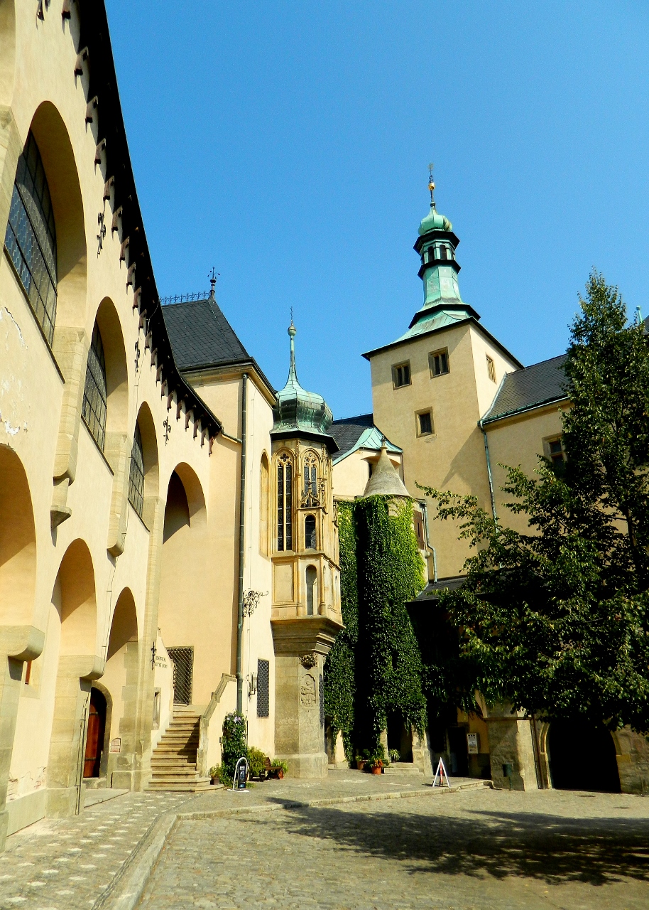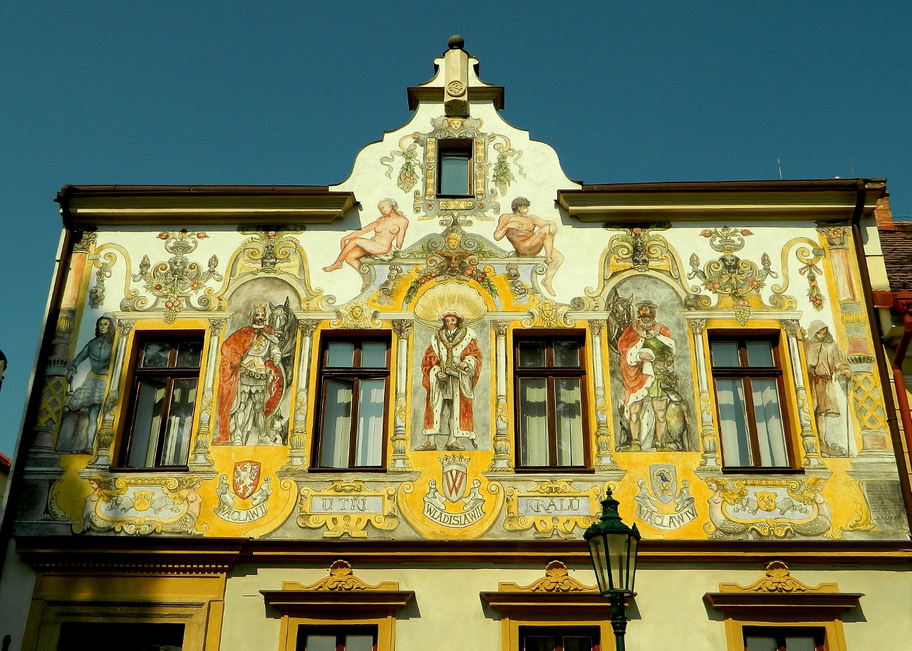 The warm ochre walls of the Italian Court were topped with onion domes and copper dove houses, and as well as being the town’s mint and home to the official minter of the coins, it was also the temporary residence of the Bohemian Kings. Nearby houses boasted colourful facades of frescoes relating their history as places of trade and pleasures.