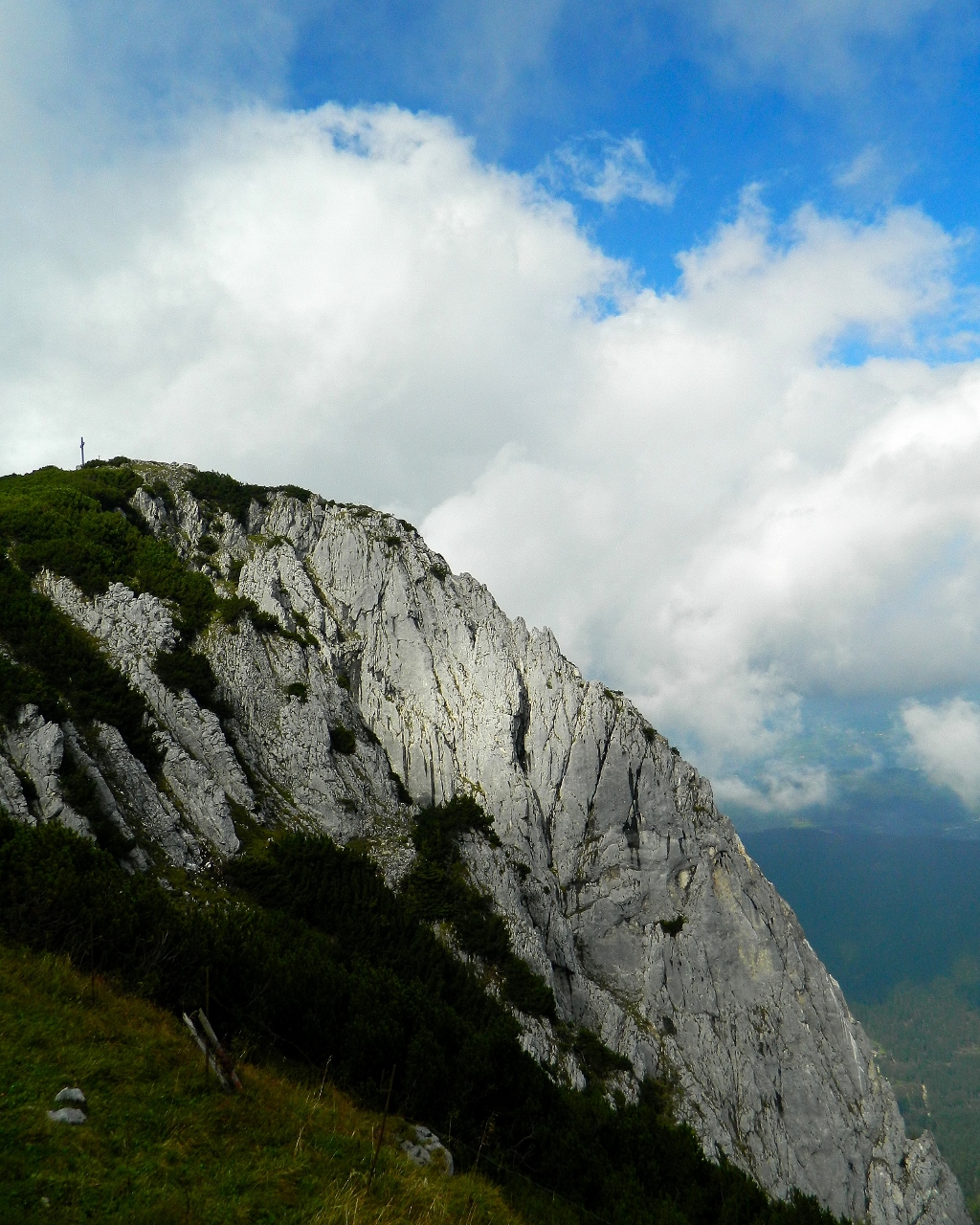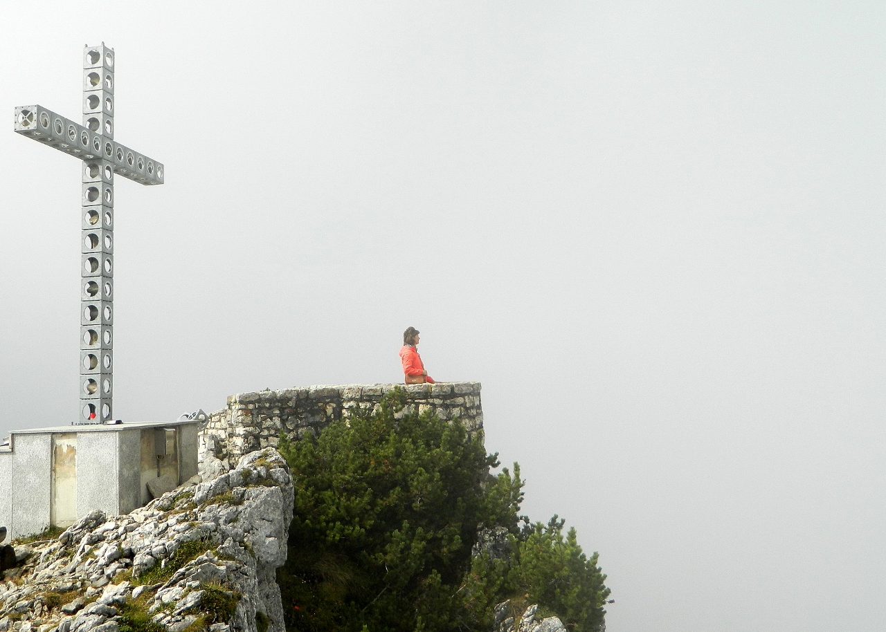 It was considerably cooler and visibility was limited further every few minutes by thickening white mists. We hiked off in the direction of the European Cross symbolising unity, and still including a lump of granite from Great Britain in its steel frame, for an hour’s scramble up along rocky paths.