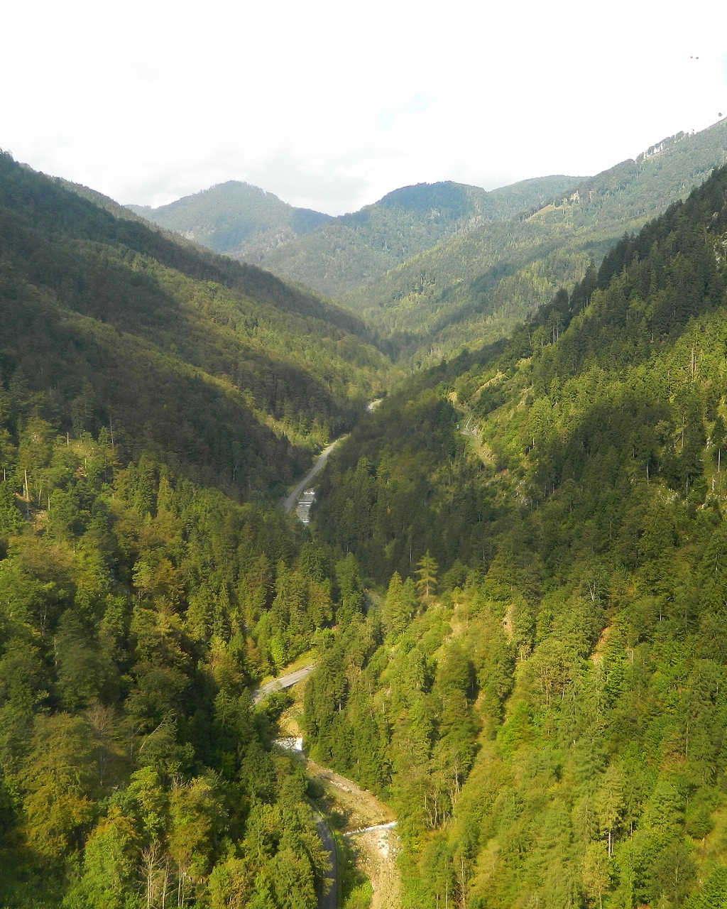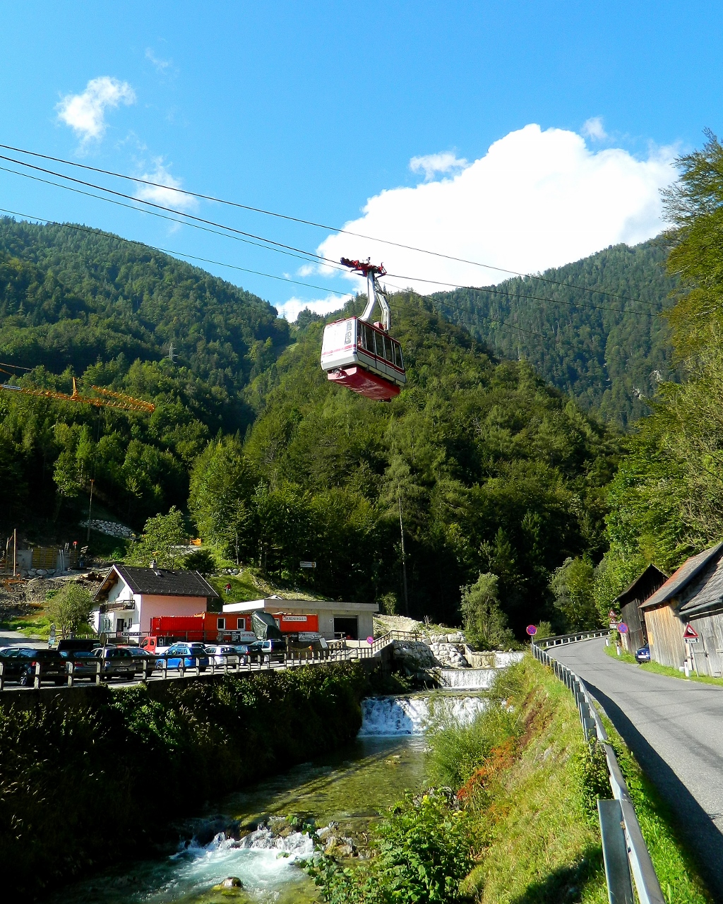 The ride down in the cable car whisked us even more quickly across the tops of the pine trees that somehow clung to the rocky crags with their roots visibly showing against the stark white stone. Where a tree had failed to survive, a gaping gash through the forest showed the tumultuous path wreaked by its destructive tumble.
