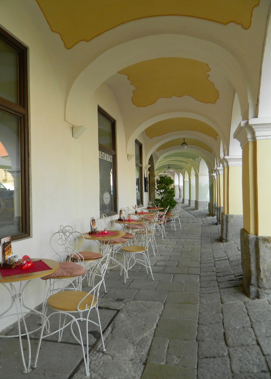 Like Kutná Hora, Telč is a town that is lived-in. Businesses, mostly gift shops and restaurants, lined the cool arcades of the square, above which locals lived in historic apartments. Residents parked their cars on the cobbles and a tabby cat slinked past us. We dodged the Japanese and Chinese tour groups (presumably on day trips from Prague) and found our own quiet corners.