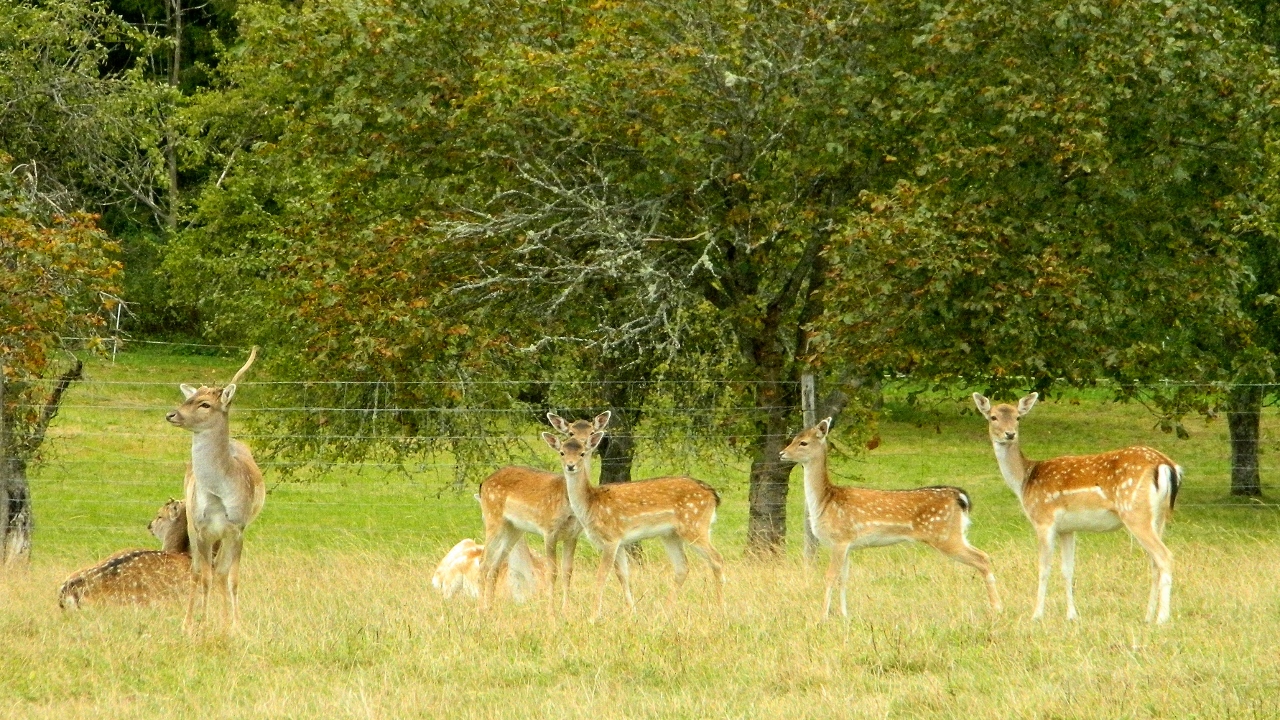 We headed off across the parkland following signs to see ‘ruine Hausen’ and passing grazing deer. Wooden hunter’s hides lined the dark edges of the surrounding forest and we met with some surprise a group of six rather grumpy and tired looking men all dressed in black. They weren’t holding guns but we had the impression that they had been. Otherwise we saw no one.