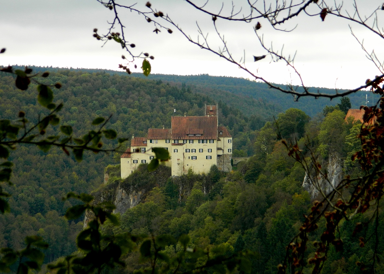Schloss Werenweg turned out to be privately owned and not open to visitors. It looked expensively maintained and was surrounded by a courtyard containing an enormous stone farmhouse and barn, and several wooden cruck framed buildings. Its spectacular setting is on a crag of limestone cliff high above the Donau.