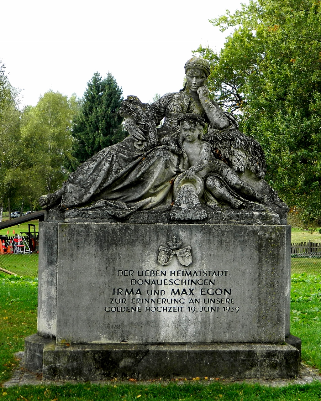 Also overlooking the confluence is an allegorical sculpture of the child Danube in the arms of its mother Baar. The dedication is to a society prince and his wife on the occasion of their golden wedding anniversary. We looked him up online but stopped reading when it became clear he was actively involved in the Nazi party.