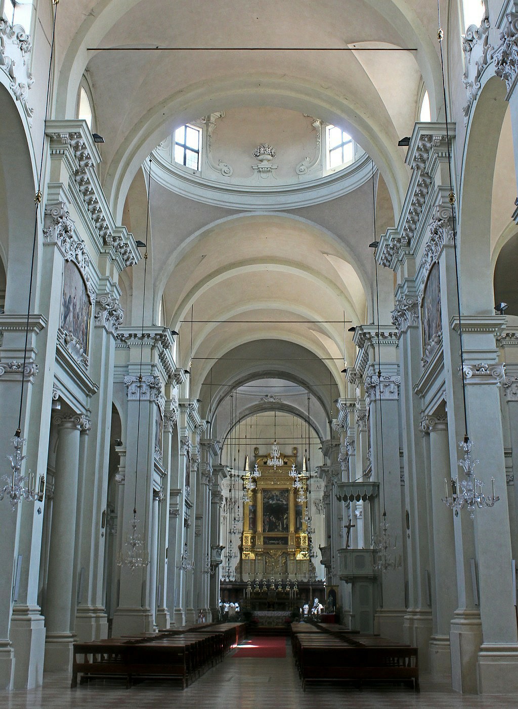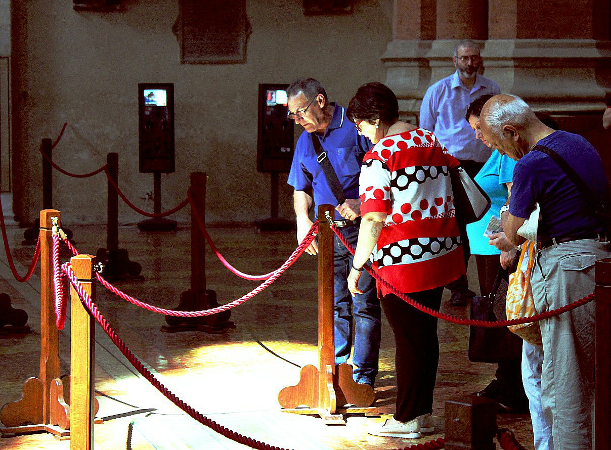 Completed, it would have dwarfed St Peters’s in the Vatican City but perhaps unsurprisingly the church was starved of funds to achieve this. Only its main portal was fully finished in Veronese pink and white marble, and features exquisite carvings by Sienese sculptor Jacopp della Quercia. Inside a baffling sun dial stretches across the length of the floor but we couldn’t work out how to read it, nor could curious others.