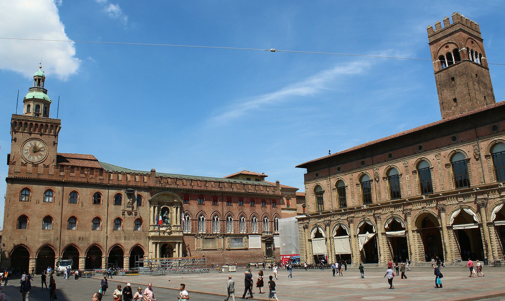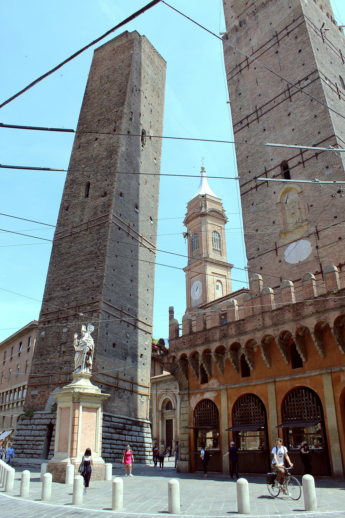 Of the more than 180 medieval towers that dotted across the original city, only two now remain, the Torri Pendenti, or leaning towers. Both belonged to leading noble families and were referenced by Dante in his Inferno.