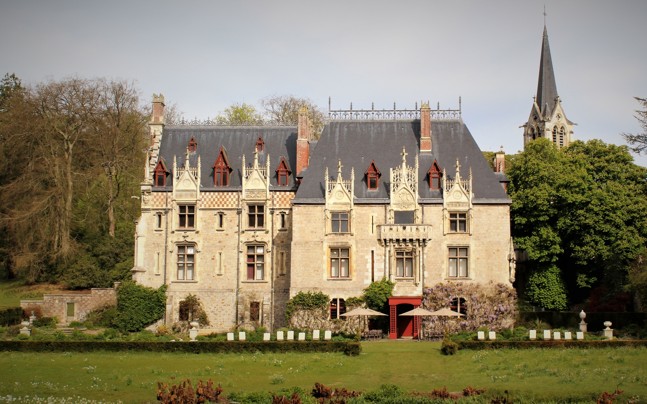 On the first full day of our trip, we walked to see a charming stone manor house that we had spotted from the road and hoped was open to the public. From the outside the house looked as if every generation of its owners had wanted to outdo the previous, by adding to it architecturally.