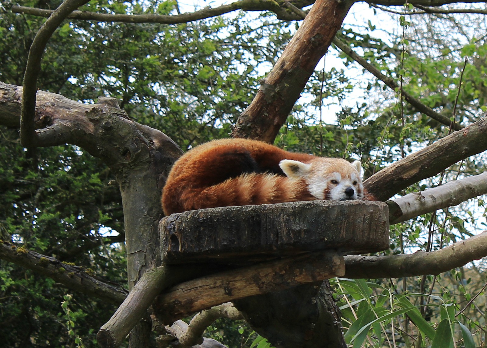 Opposite a family of four gibbons treated us to a display of jungle antics, swinging, leaping and somersaulting through hanging vines before settling down on the ground to munch fruit. Perched sleepily on top of maypoles two red pandas sighed and snored their way through the morning after a night of nocturnal antics amongst their parkland trees. A herd of spotted antelope galloped past us on the way to meet their morning feed and scattered a dozen kangaroos, and a few pelicans, in their wake.