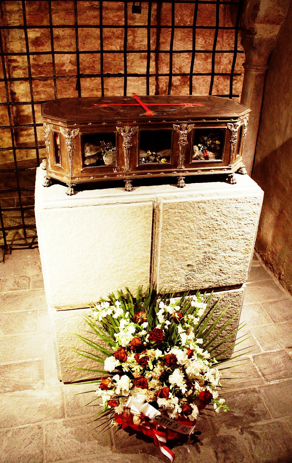 Down in the crypt of the Collegiate Church of San Secondo we circled the gracious stone pillars and columns of the 6th century church, built it was said to house the body of the martyred saint (and patron saint of Asti, Secundus). His remains are contained in a 15th century silver reliquary. It was quiet and mesmerising after the busy stampede through the tour groups above.