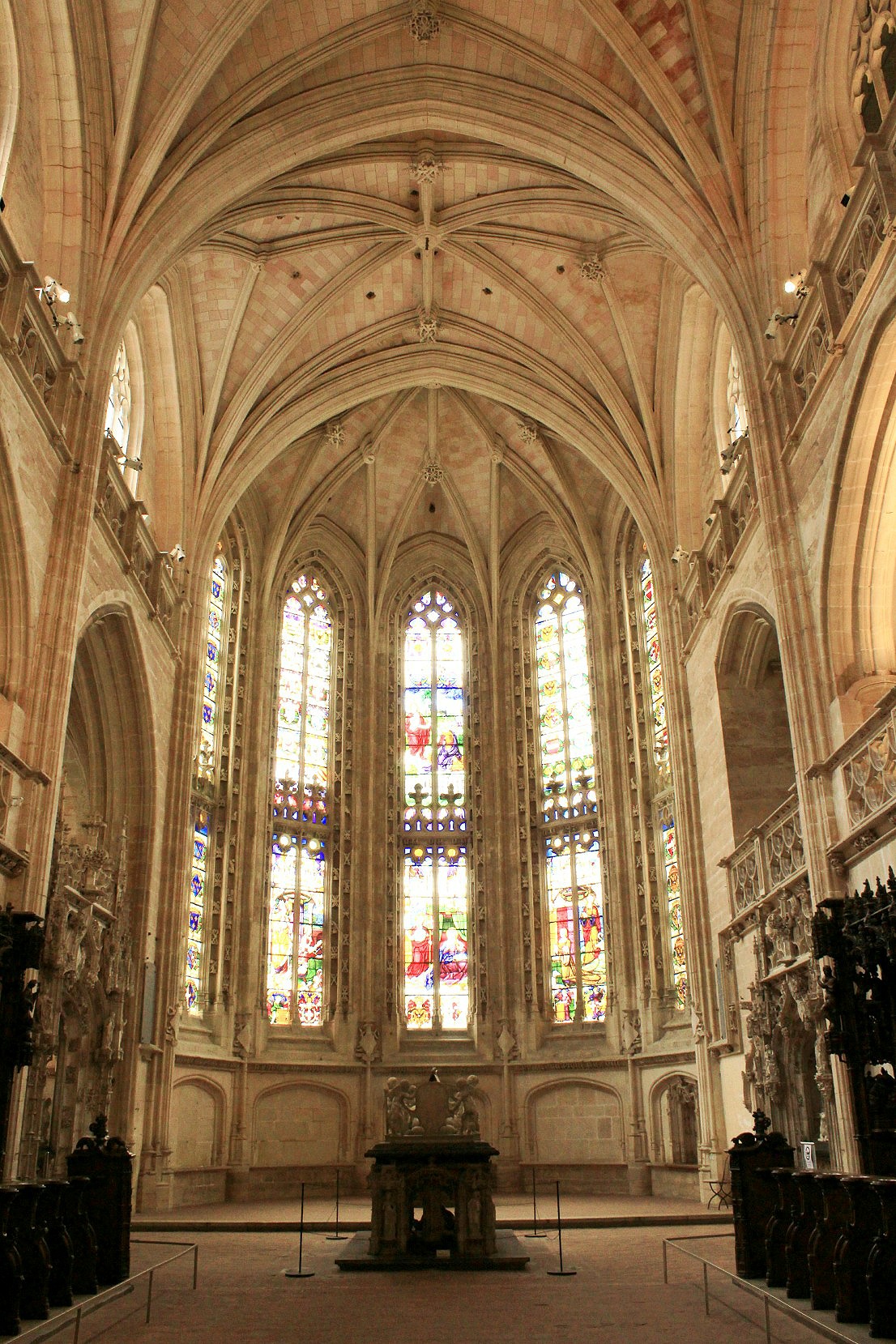 Inside the church, built in high gothic style by Loys Van Boghem commissioned by Margaret, cleaning work was still in progress but the high ribbed and vaulted nave was dazzling in its white stone and colonnaded simplicity. Up above the ornate carved choir stalls we wandered along stone balconies amid Romanesque arches.