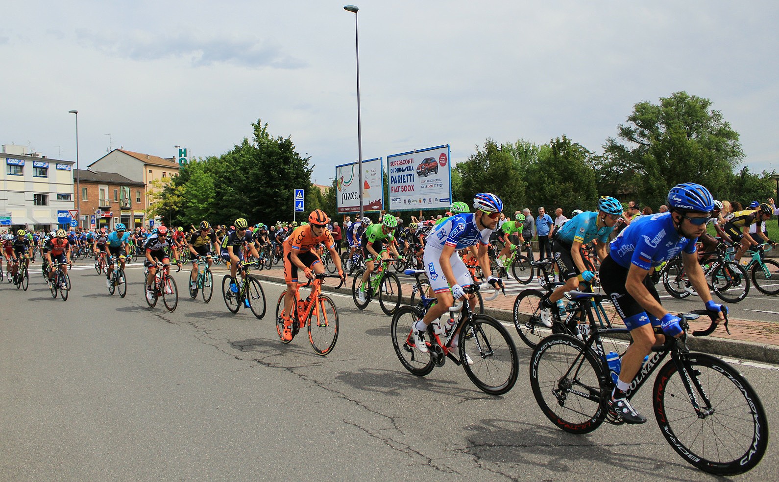 At the head of the pack three bikers gamely pedalled to a short lead following the carnival procession of local and regional Polizia on motorbikes waving and tooting to the crowds lining both sides of the road. It was a terrific high-octane spectacle!