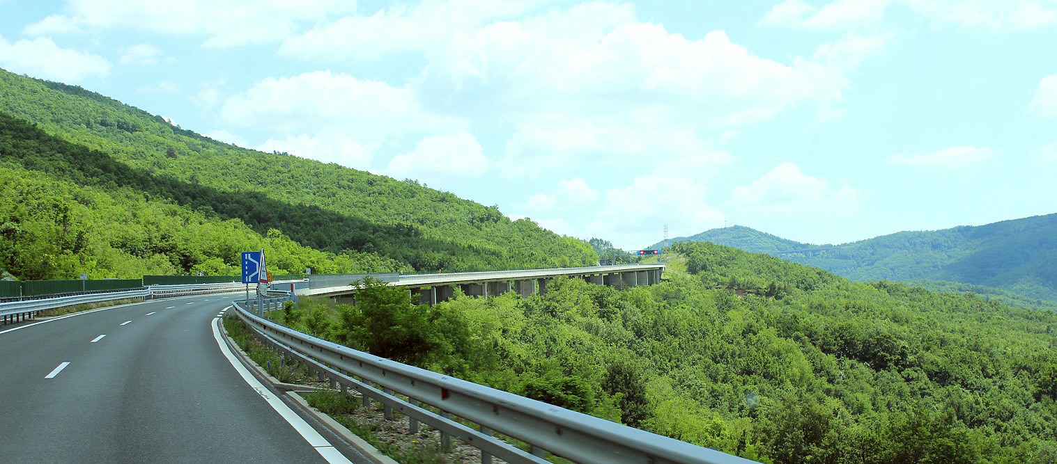 Across the border on a climbing sky-drive on an elegantly engineered mountain motorway we swapped Italian highway chaos for a calm and orderly passage amongst freight trucks and local traffic heading east.