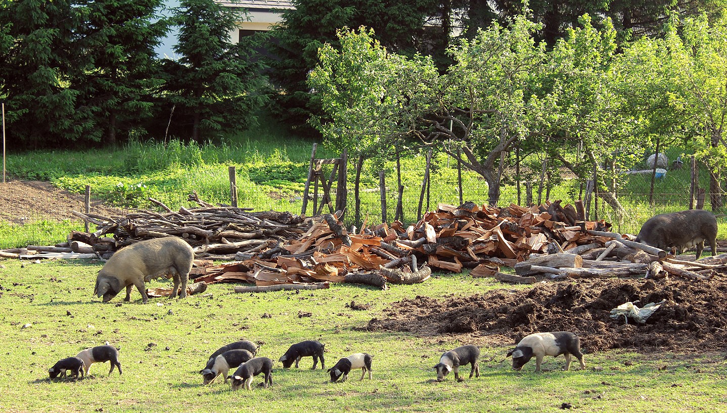 Animals, well-tended and comfortable farm stocks of cattle and sheep as well as domestic small-holdings of pigs, chickens and, unusually, soft-eyed goats were plenteous.