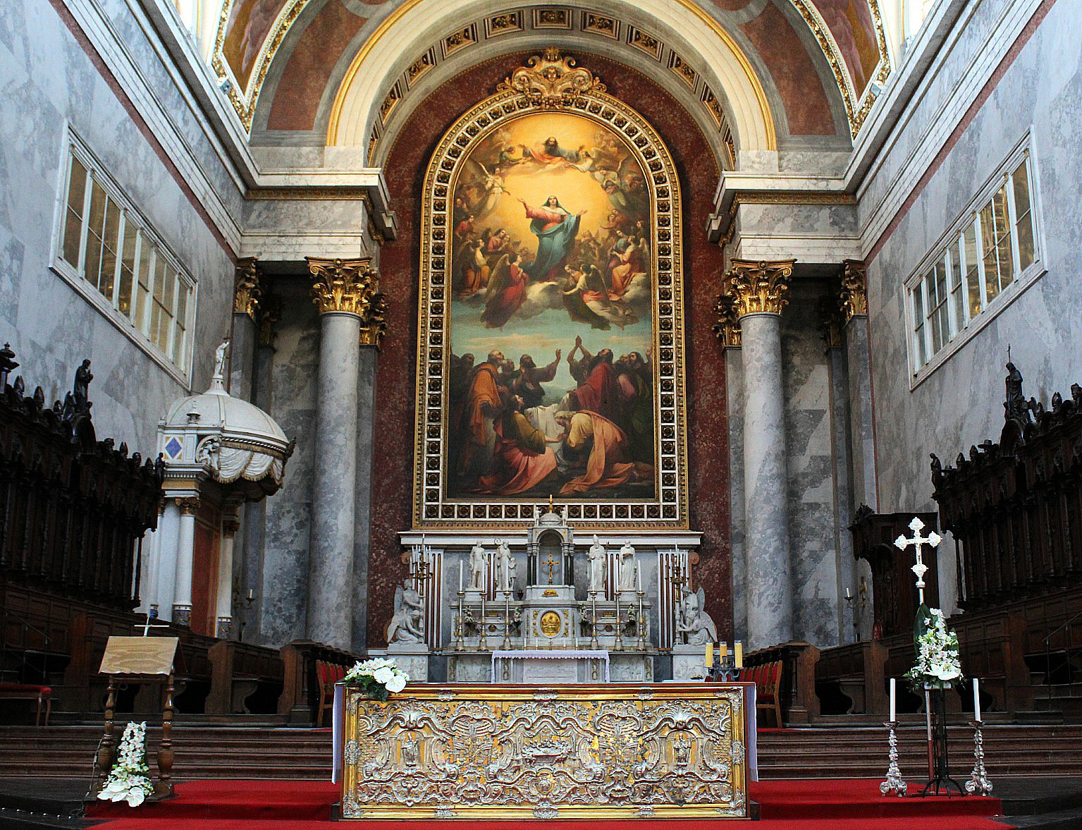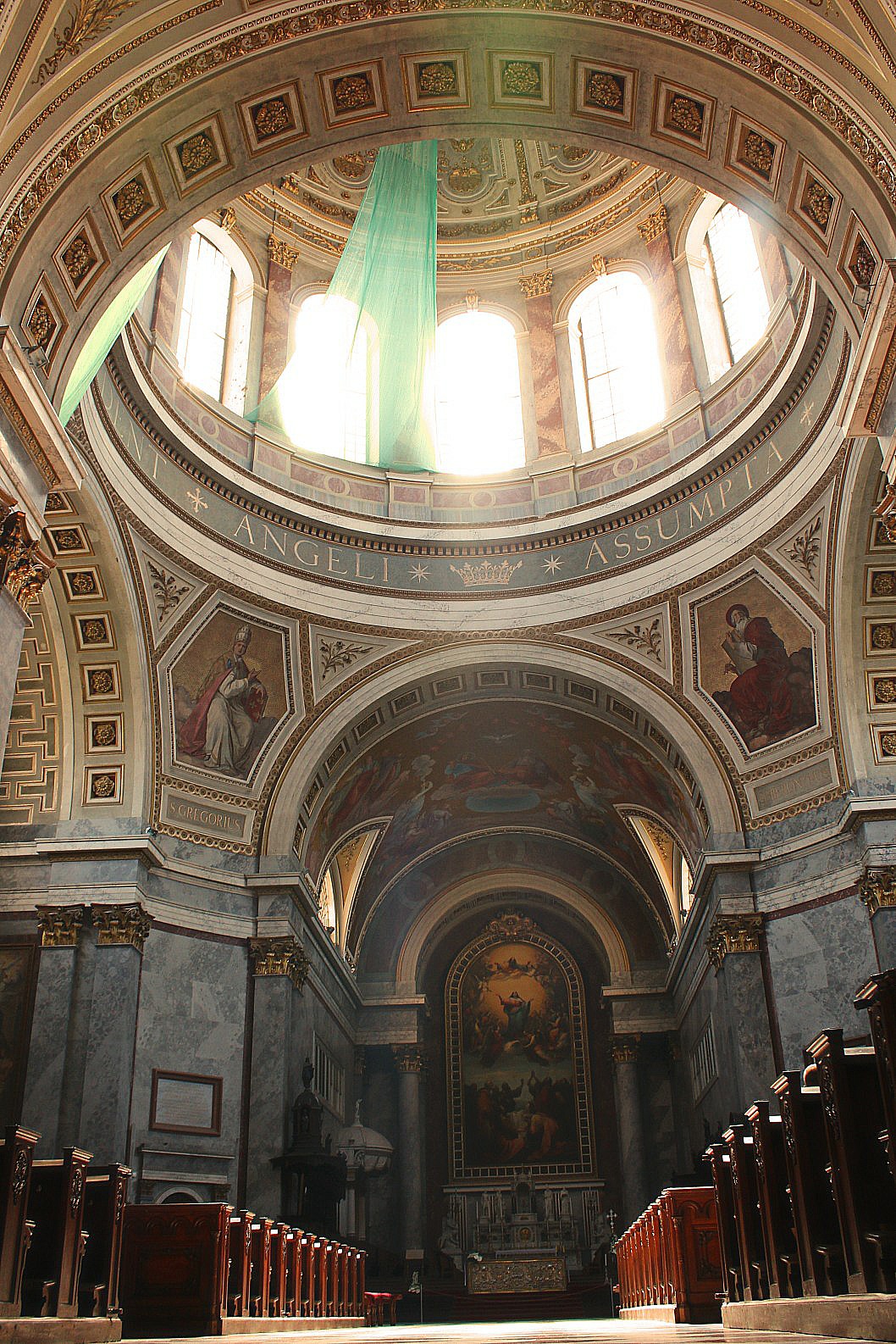 Elegant and simple on the outside its interior is a complex decoration of gold gilt frescoes, Florentine Renaissance marble sculpture, Titian-inspired paintings and endless statues of saints and primates. It is quite dizzying.