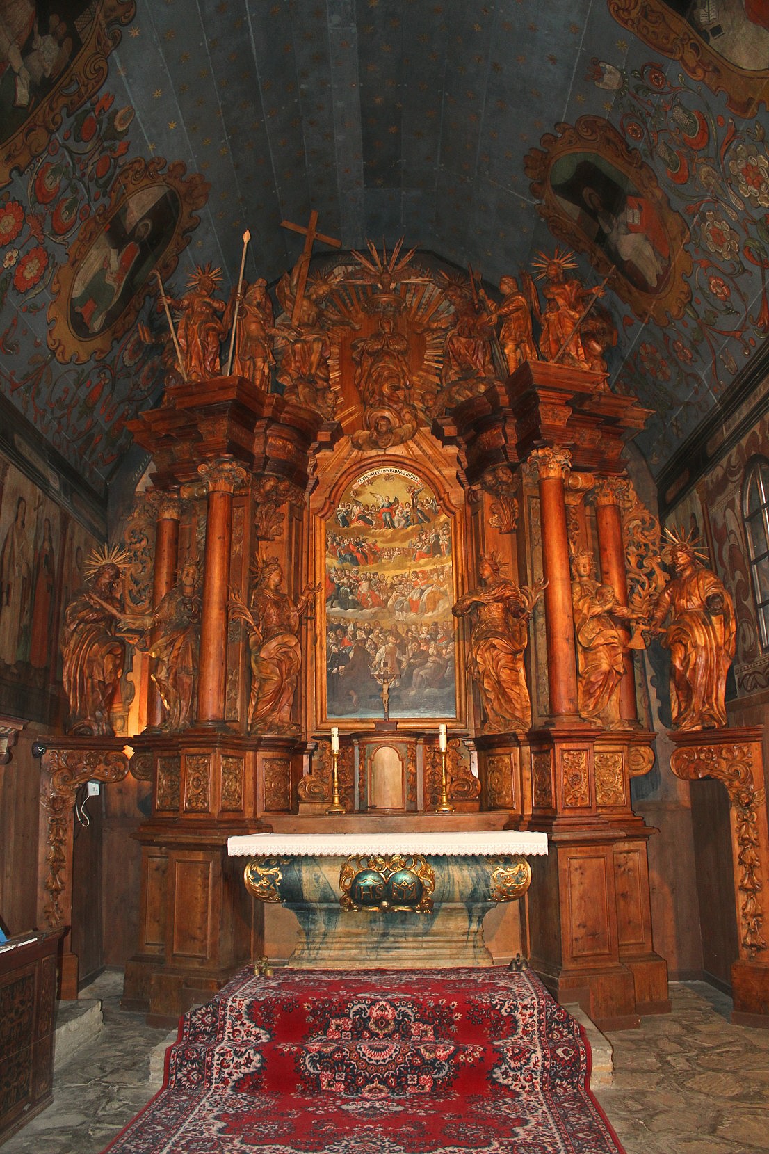 We found a quieter moment at Tvrdošín at a Gothic wooden church, fully restored in the 1970s. Together with six other churches in Slovakia, it’s unique in this part of Europe for its interior decoration of distempered paintings, wooden carvings and a beautiful rose ceiling.