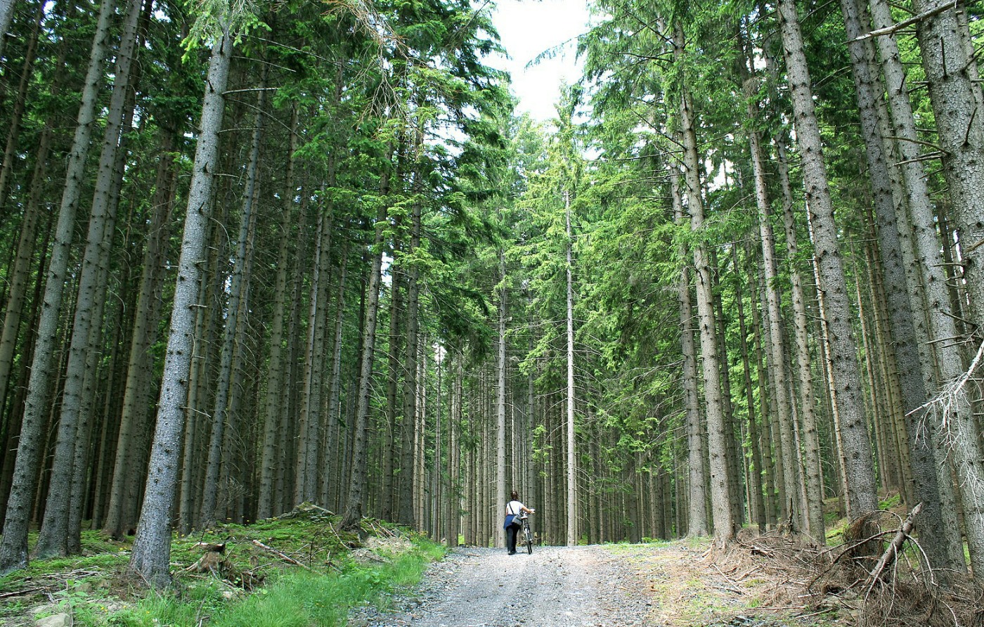 Pedalling the bikes up mud and rough scree tracks in the forest, eventually we puffed and pushed them along rough paths of loose aggregate in granite chunks the size of potatoes. It was a work out.
