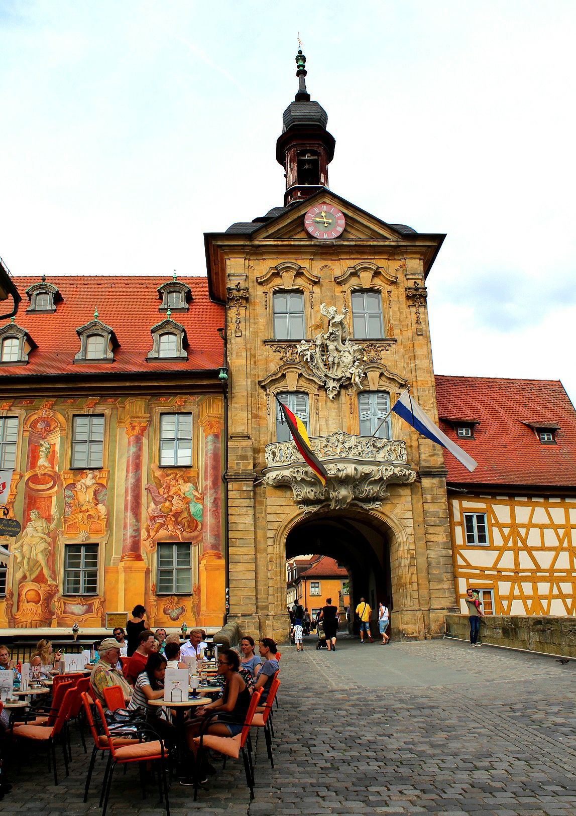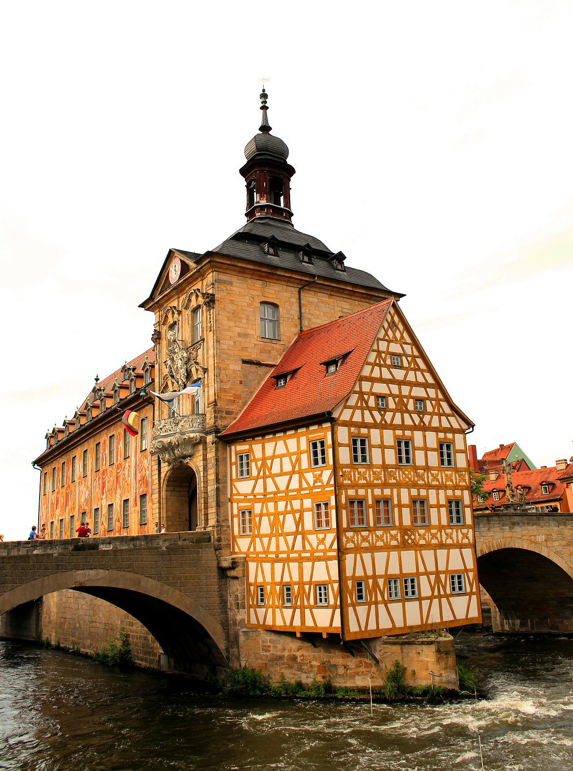 It boasts timber framed buildings painted in bright colours and frescoes, impossibly lop-sided or leaning into each other over narrow passageways, as well as a smart collection of baroque buildings introduced when Bamberg was the centre of the Enlightenment in southern Germany.